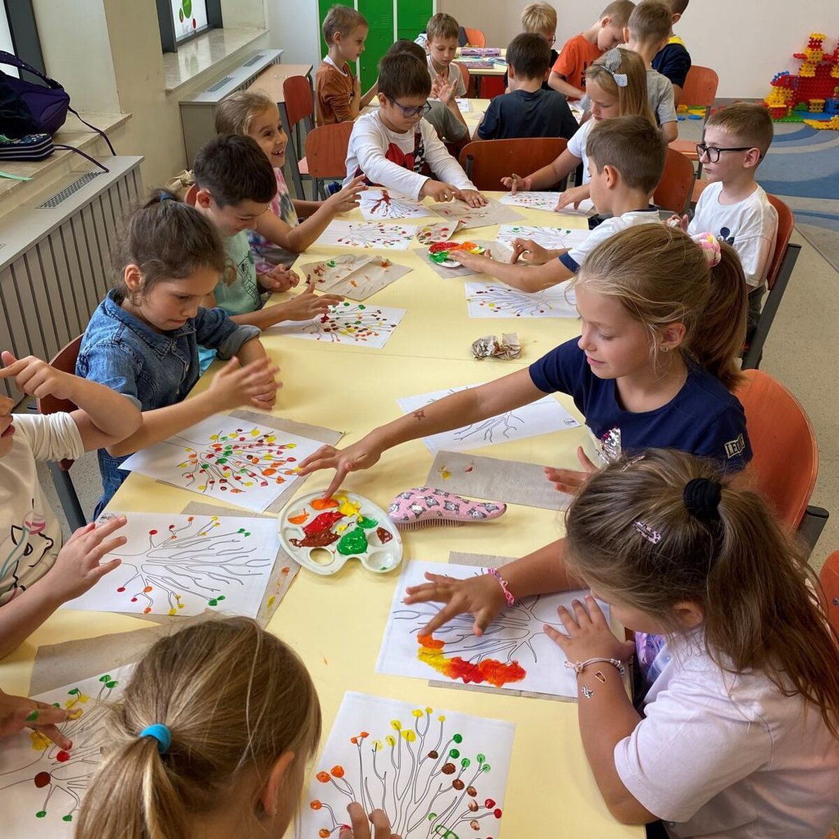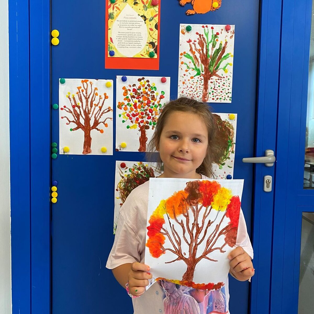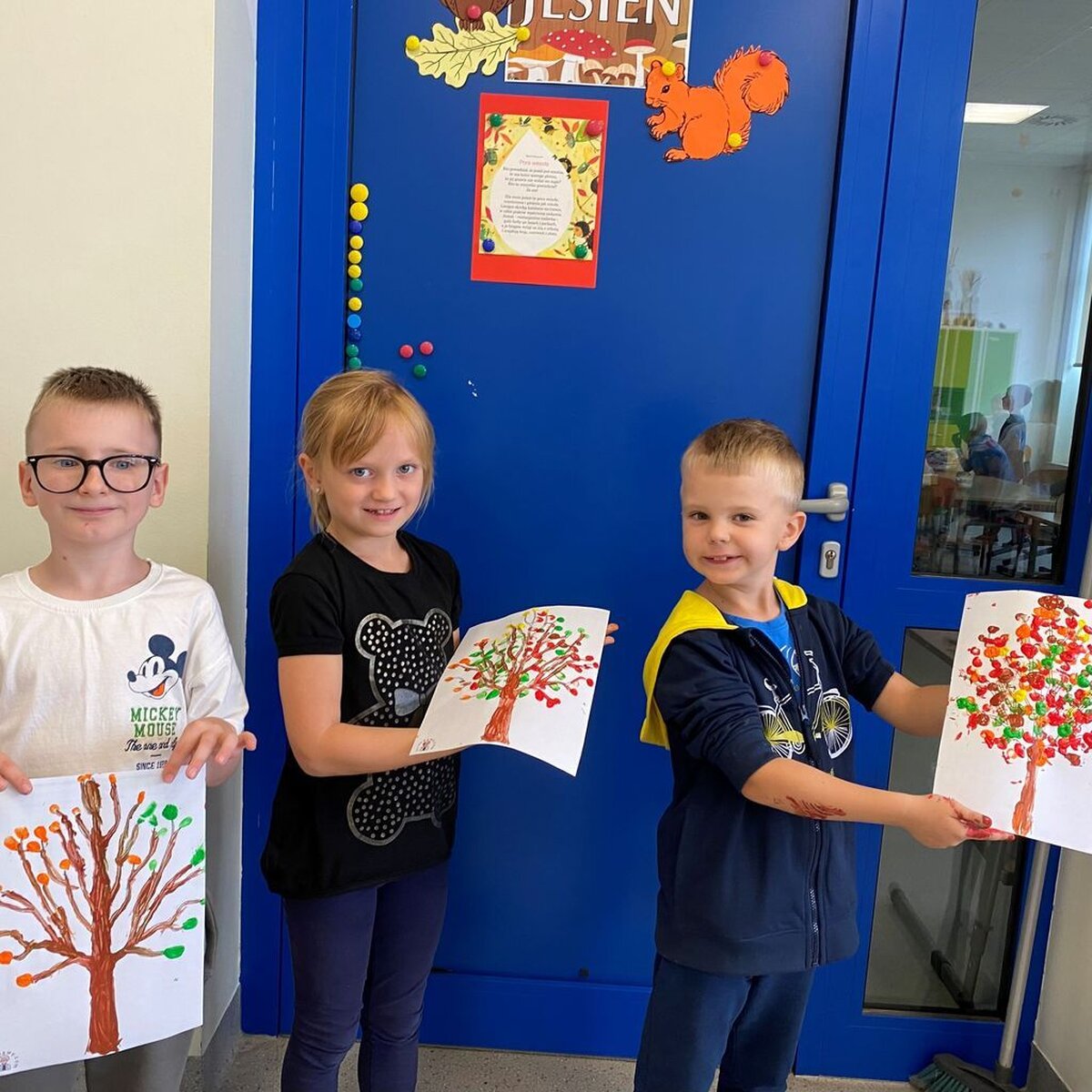 W ubiegłym tygodniu rozmawialiśmy o zmianach zachodzących w przyrodzie jesienią. Zastanawialiśmy się co znaczy stwierdzenie: „polska złota jesień”; opisywaliśmy oznaki jesieni dookoła nas. Omawialiśmy pojęcia jesień kalendarzowa i jesień astronomiczna. Poznawaliśmy świat różnymi zmysłami: wzrok – kolory, słuch – wiatr, dotyk – deszcz. Na zajęciach plastycznych wykonywaliśmy kolaż z różnych materiałów – „Pani Jesień”, „Taniec jesiennych liści”. Nazywaliśmy drzewa i segregowaliśmy liście; słuchaliśmy piosenek o tematyce jesiennej i pląsaliśmy w takt muzyki; rozwiązywaliśmy rebusy i zagadki. Spacerowaliśmy szukając jesiennych skarbów i bawiliśmy się na podwórku szkolnym z użyciem piłek, obręczy i skakanek.