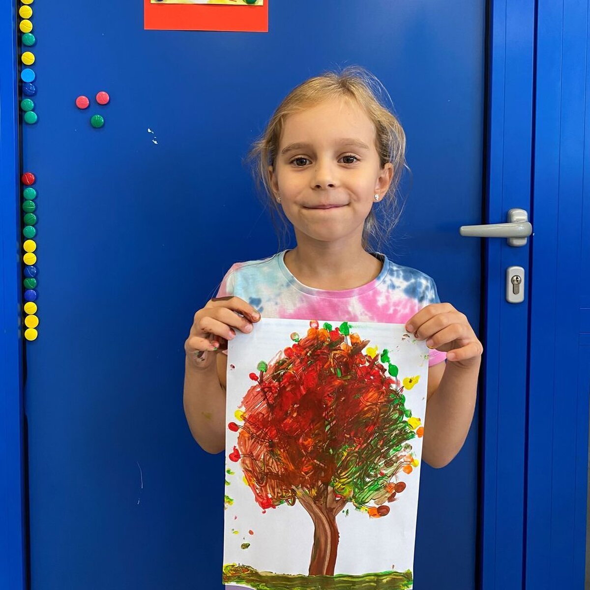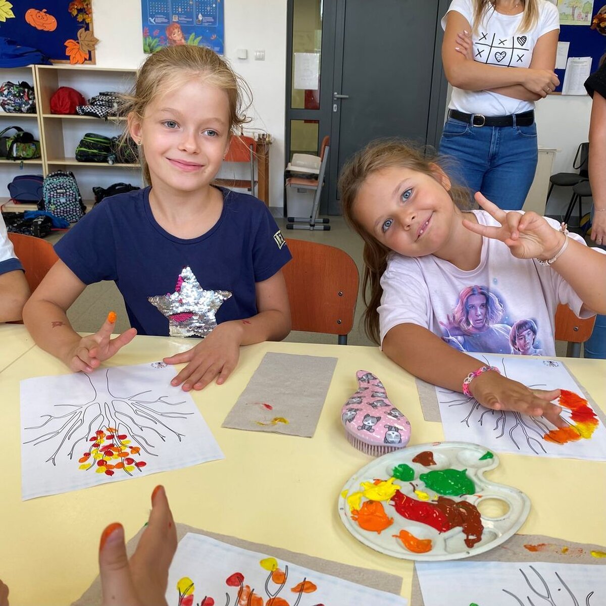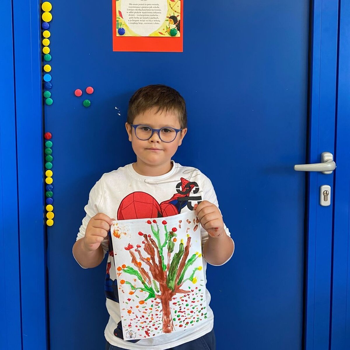 W ubiegłym tygodniu rozmawialiśmy o zmianach zachodzących w przyrodzie jesienią. Zastanawialiśmy się co znaczy stwierdzenie: „polska złota jesień”; opisywaliśmy oznaki jesieni dookoła nas. Omawialiśmy pojęcia jesień kalendarzowa i jesień astronomiczna. Poznawaliśmy świat różnymi zmysłami: wzrok – kolory, słuch – wiatr, dotyk – deszcz. Na zajęciach plastycznych wykonywaliśmy kolaż z różnych materiałów – „Pani Jesień”, „Taniec jesiennych liści”. Nazywaliśmy drzewa i segregowaliśmy liście; słuchaliśmy piosenek o tematyce jesiennej i pląsaliśmy w takt muzyki; rozwiązywaliśmy rebusy i zagadki. Spacerowaliśmy szukając jesiennych skarbów i bawiliśmy się na podwórku szkolnym z użyciem piłek, obręczy i skakanek.