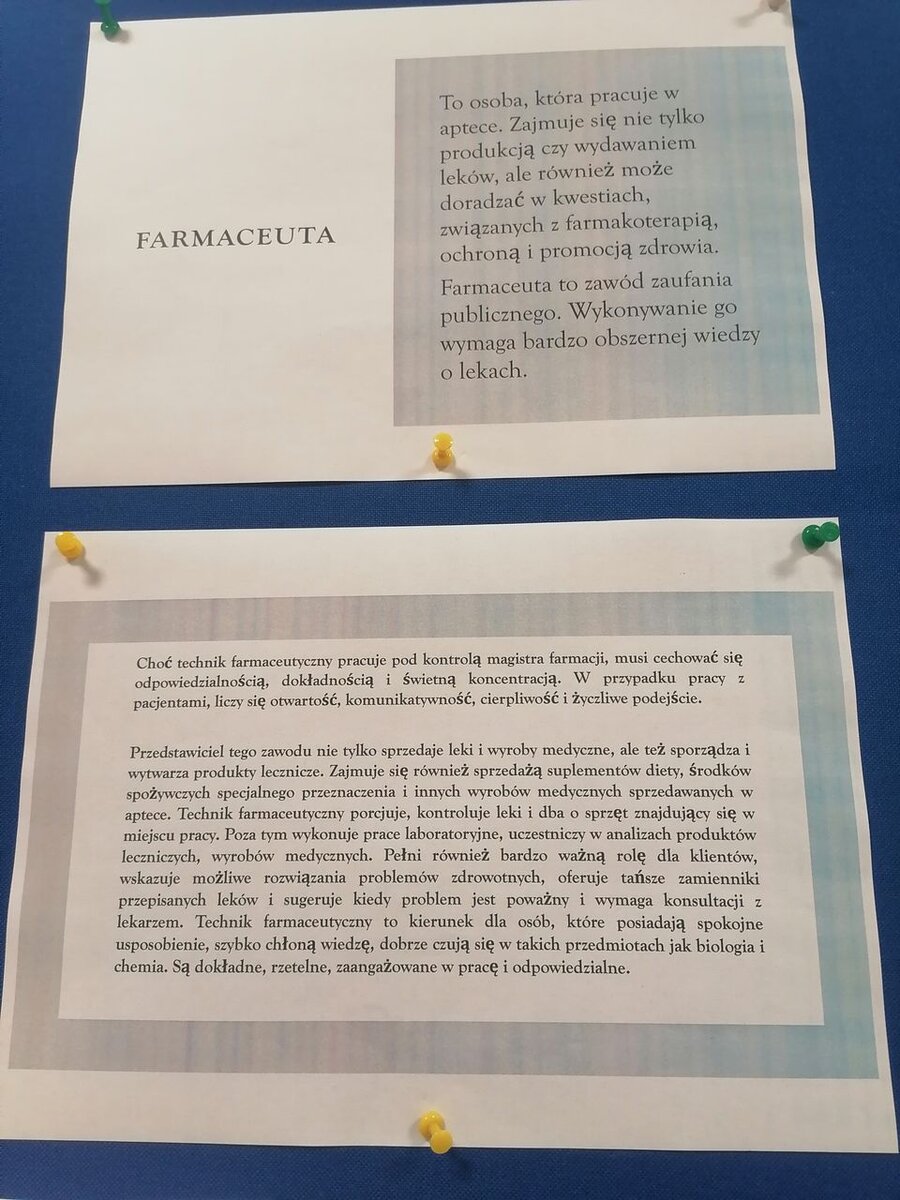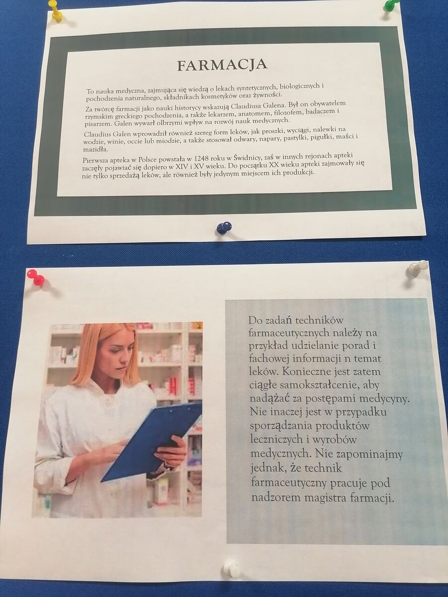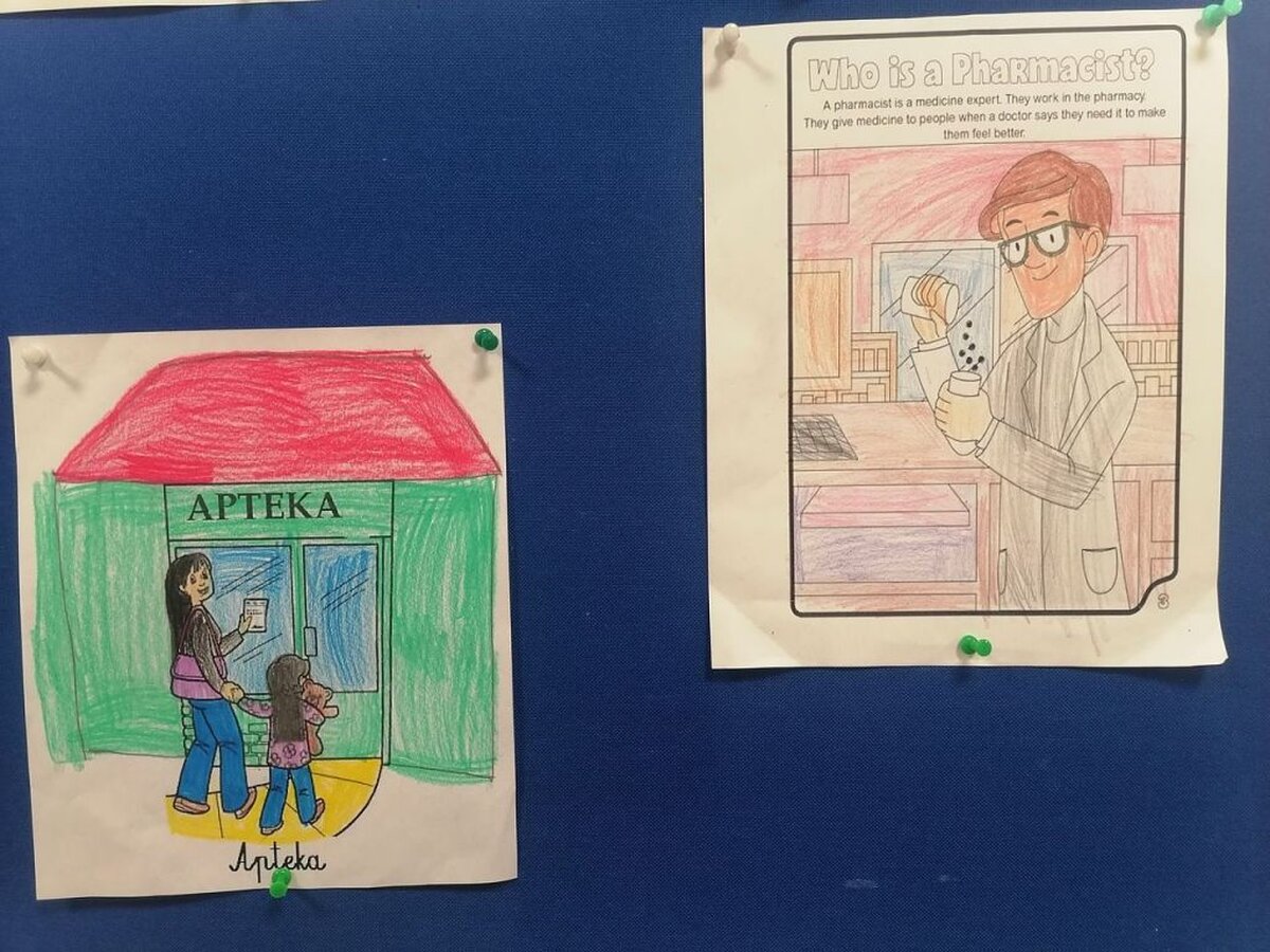 W dniu 25 września obchodziliśmy Dzień Farmaceuty. Dzieci podczas pogadanki uzupełniły swoją wiedzę, na czym polega praca w aptece, jakie urządzenia są potrzebne do sporządzenia leków recepturowych. Z ciekawością wysłuchały informacji, czym jest farmacja oraz jakie predyspozycje powinny posiadać osoby, które chcą wykonywać ten zawód. Dowiedziały się również, jakie rośliny rosnące w naszym najbliższym otoczeniu mają działanie lecznicze oraz jak ważne jest przyjmowanie środków farmakologicznych tylko wskazanych przez lekarza i pod kontrolą osób dorosłych. Uczniowie wykonali również pracę plastyczną, związaną z apteką i zawodem farmaceuty.