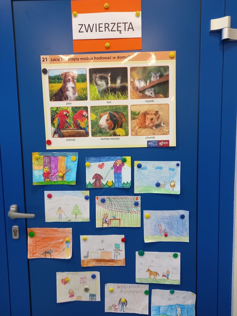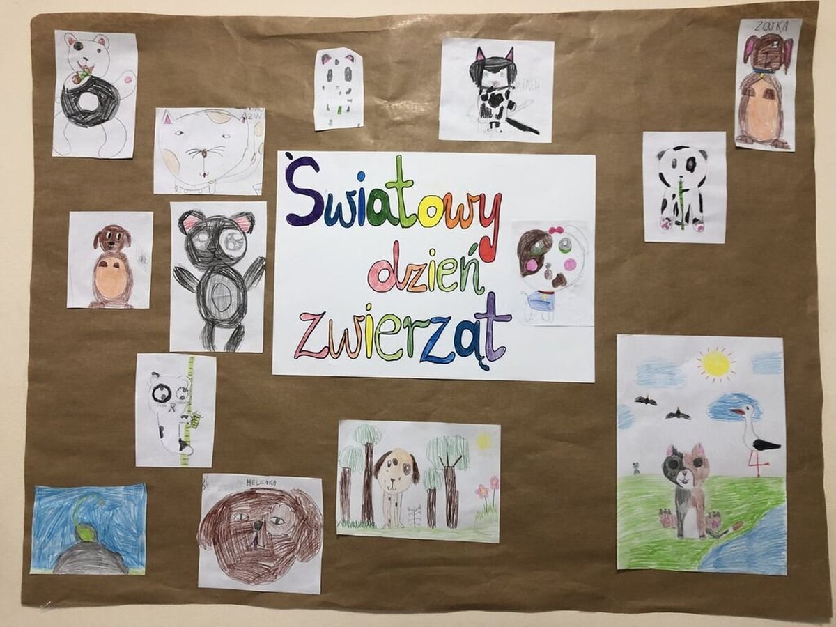 Poprzedni tydzień w naszej świetlicy szkolnej skupiał się na tematyce troski i dbania o zwierzęta, zarówno domowe jak i te najbardziej wrażliwe i zagrożone wyginięciem. Podczas zajęć świetlicowych rozmawialiśmy o Światowym Dniu Ochrony Zwierząt, uwrażliwiając naszych uczniów na prawidłowe postawy w opiece nad zwierzętami oraz wyodrębniając charakterystyczne cechy opiekuna zwierząt. Dzieci chętnie wypowiadały się na temat swoich domowych pupilków, opowiadając o ich wyglądzie, zwyczajach i cechach charakterystycznych. Podjęliśmy również temat roli zwierząt w życiu człowieka oraz odpowiedzieliśmy na pytanie dlaczego zwierzęta mogą być najlepszymi przyjaciółmi dla ludzi. Uczniowie w ciągu tygodnia wykonywali różnego rodzaju prace plastyczne, obrazujące zwierzęta jak również ich życie. Ponadto uczniowie brali udział w licznych zabawach ruchowych („Wiewiórki do dziupli”, „Chodzi lisek koło drogi”) oraz zabawach przy muzyce („Stary niedźwiedź mocno śpi”).