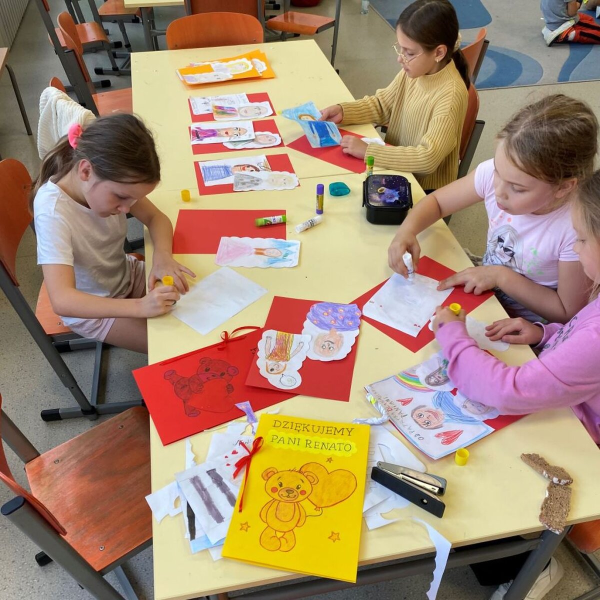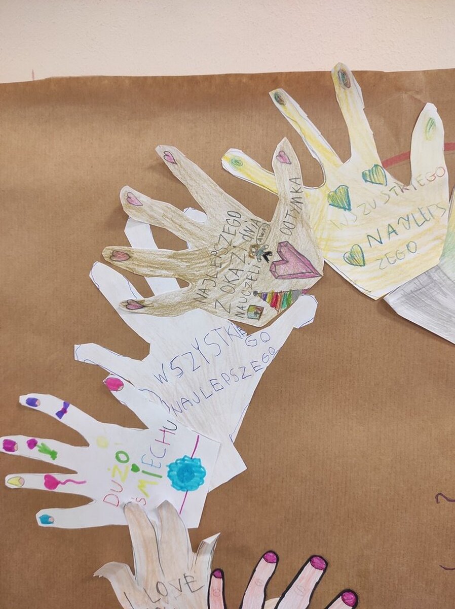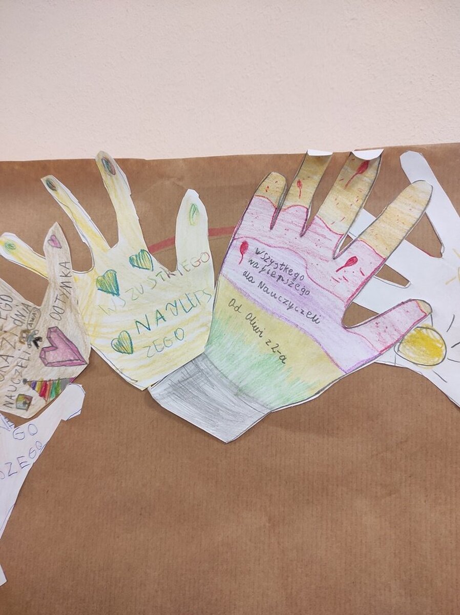 Z okazji zbliżającego się Dnia Nauczyciela w minionym tygodniu zwróciliśmy naszą uwagę na zawód nauczyciela. Dlatego też podczas zajęć świetlicowych rozmawialiśmy o roli nauczyciela we współczesnej szkole oraz zadaniach jak i wyzwaniach, jakie aktualnie przed nim stoją a także wymieniliśmy cechy dobrego nauczyciela. W ciągu tygodnia dzieci wykonywały różnego rodzaju prace plastyczne (np.: „Portret nauczyciela”, „Laurka dla mojej Pani”) oraz uczestniczyły w zabawach na szkolnym placu zabaw. Ponadto uwrażliwialiśmy naszych uczniów na temat bezpieczeństwa w szkole jak i poza nią – zwracając szczególną uwagę na odpowiedzialność i właściwe zachowanie w konkretnych sytuacjach.