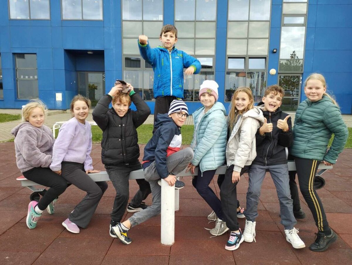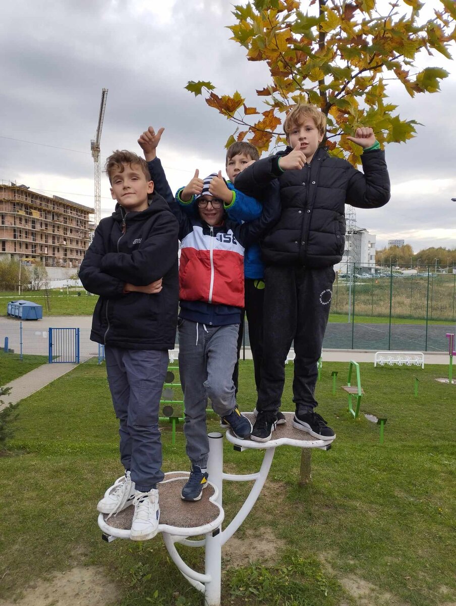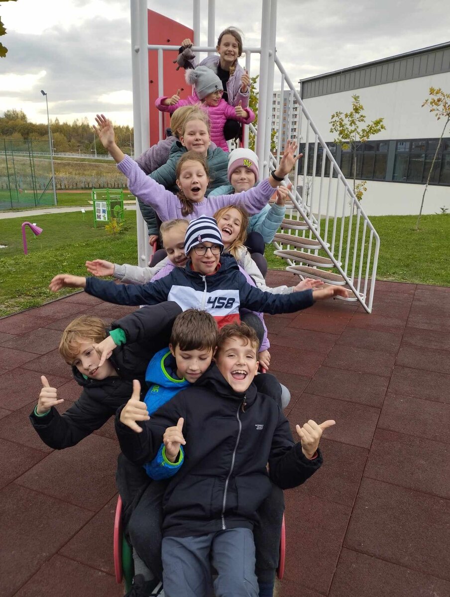 Jesienne zabawy ruchowe na świeżym powietrzu sprzyjają lepszej koncentracji, wzmacniają odporność i poprawiają nastrój. Dzieciom bardzo podobają się takie zajęcia. Potrzeba ruchu w tym wieku jest bardzo duża, dlatego wykorzystujemy każdy pogodny, jesienny dzień, aby wyjść na plac zabaw, bo „w zdrowym ciele, zdrowy duch!”