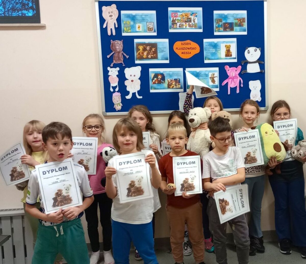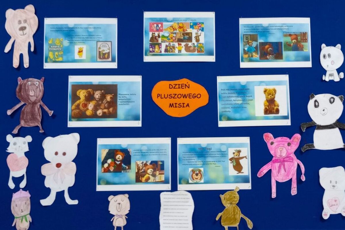 Dzień Pluszowego Misia obchodzimy 25 listopada. Tego dnia dzieci mogły przynieść ze sobą do szkoły swoje ulubione pluszaki. Miś był motywem przewodnim zajęć organizowanych w świetlicy szkolnej. Świętowanie rozpoczęło się od poznania historii tego święta i czytania fragmentów bajek o znanych i lubianych niedźwiadkach. Dzieci wykonały prace plastyczne, podczas których mogły wykazać się inwencją twórczą, grały w gry, tańczyły i bawiły się przy muzyce. Otrzymały również dyplomy za aktywny udział w zajęciach. Miś jest symbolem dobra, miłości, ciepła, łagodności i opiekuńczości. Miła atmosfera obchodów Święta Pluszowego Misia z pewnością pozostanie na długo w naszej pamięci.