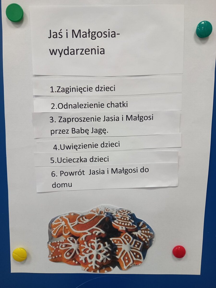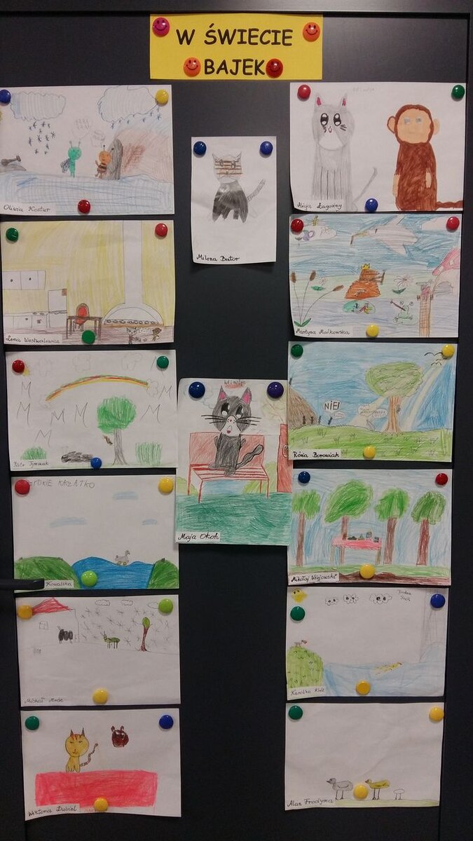 Podczas zajęć na świetlicy rozmawialiśmy na temat znanych i lubianych bajek i baśni. Wspólnie czytaliśmy wybrane bajki i baśnie Andersena i braci Grimm. Wykonywaliśmy ilustracje do wybranej opowieści, rozwiązywaliśmy zagadki „Jaka to bajka, jaka to baśń?”. Każde dziecko, na zajęciach plastycznych, namalowało ulubionego bohatera z bajki lub baśni. Ponadto rozwiązywaliśmy krzyżówki i rebusy.