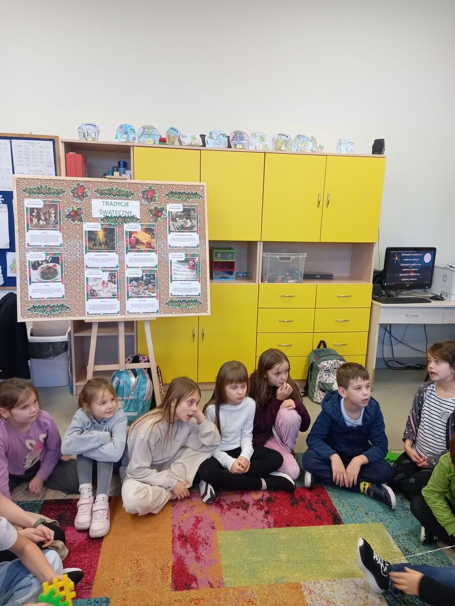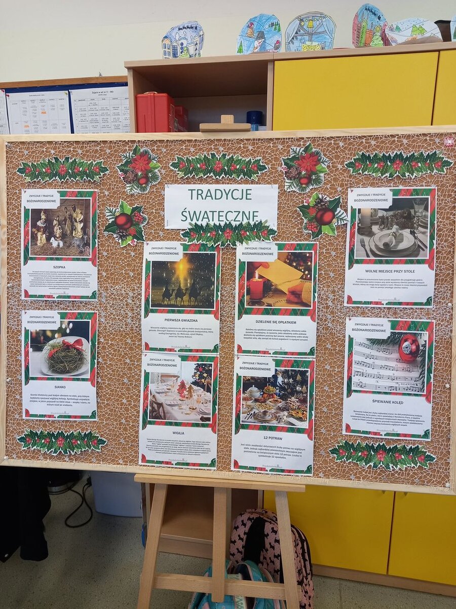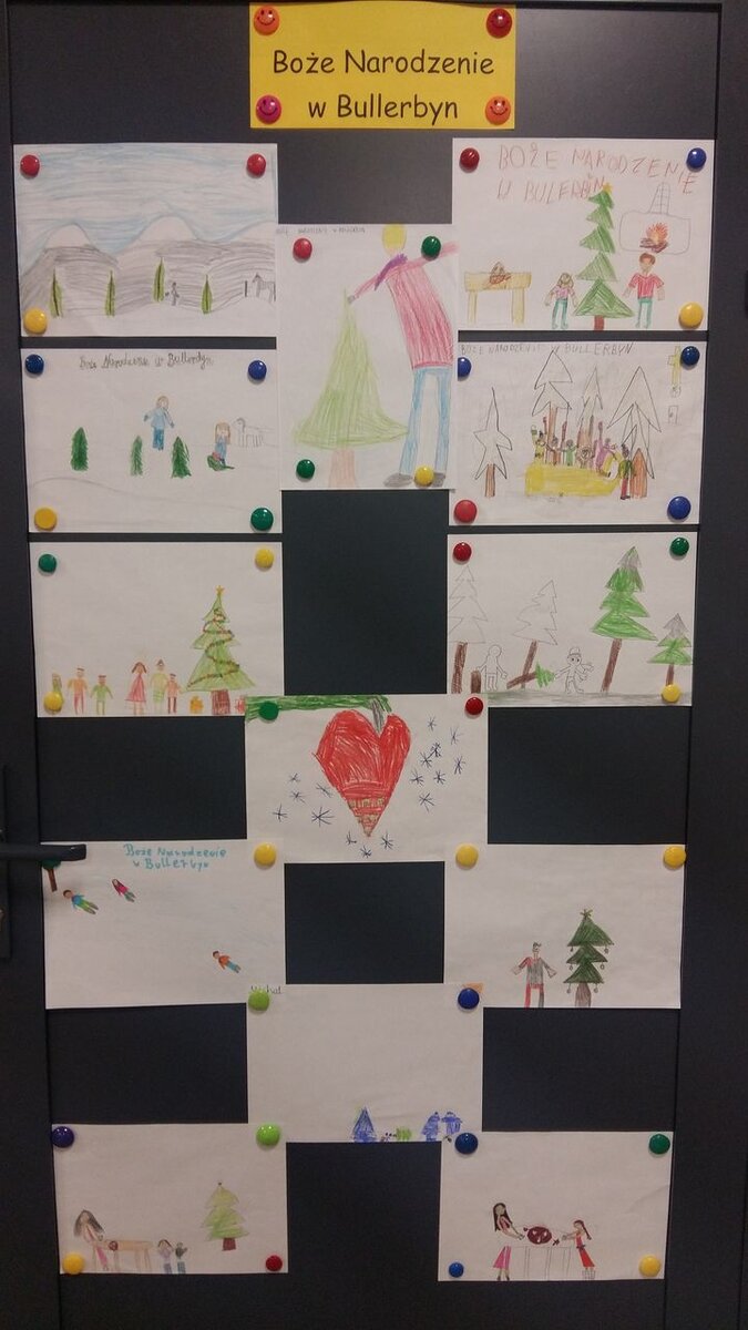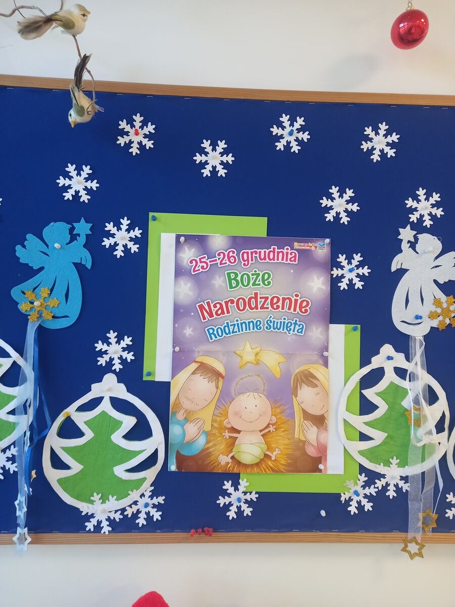 „Coraz bliżej święta, coraz bliżej święta…” Wielkimi krokami zbliża się ten magiczny, rodzinny czas. Podczas zajęć na świetlicy rozmawialiśmy na temat zwyczajów i tradycji bożonarodzeniowych w Polsce i na świecie, a także w naszych domach. Wykonywaliśmy kartki świąteczne i wspólnie redagowaliśmy życzenia dla bliskich. Ponadto czytaliśmy opowiadania, wiersze i bajki związane ze Świętami Bożego Narodzenia. Wspólnie słuchaliśmy kolęd i pastorałek. Na zajęciach plastycznych wykonywaliśmy „Serwetkowe aniołki”, a także „Wesołe świąteczne choinki” i zimowe pejzaże.
