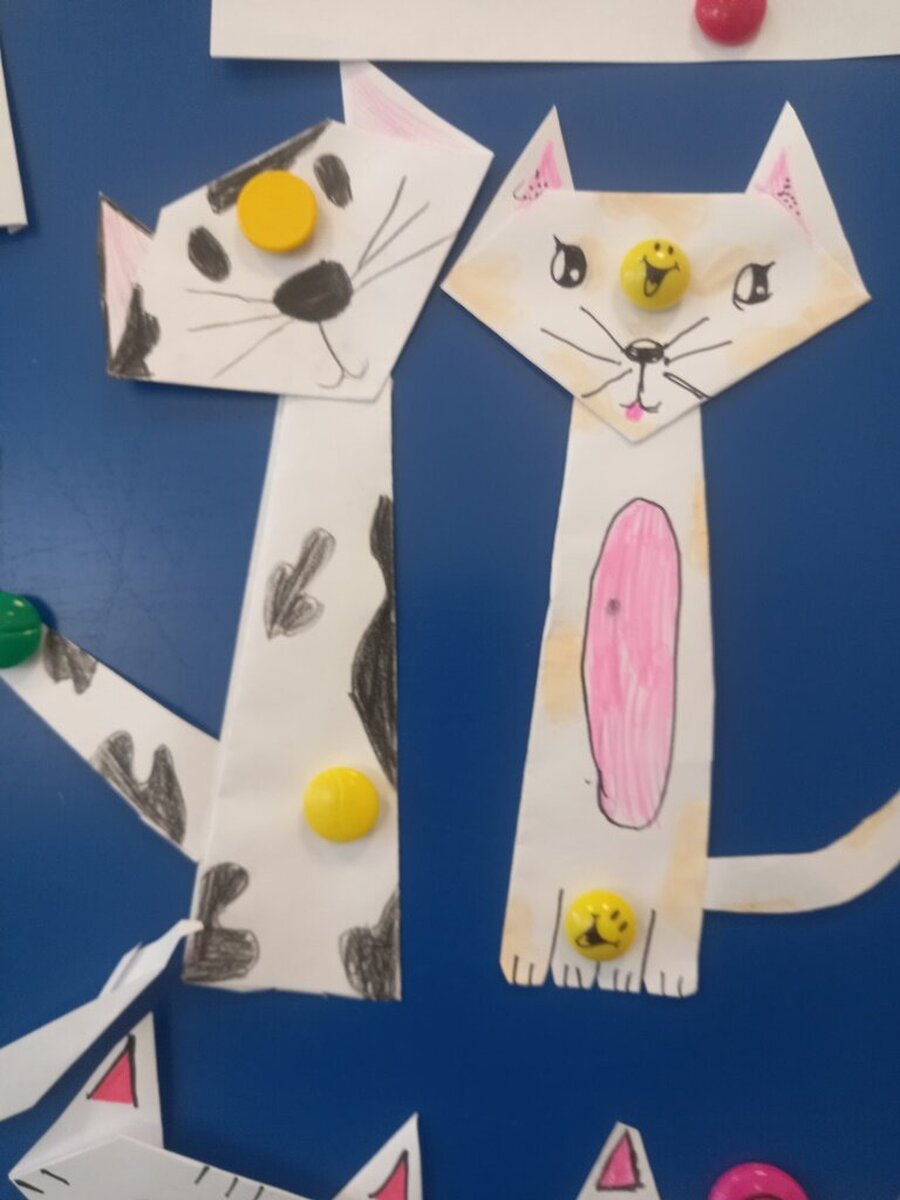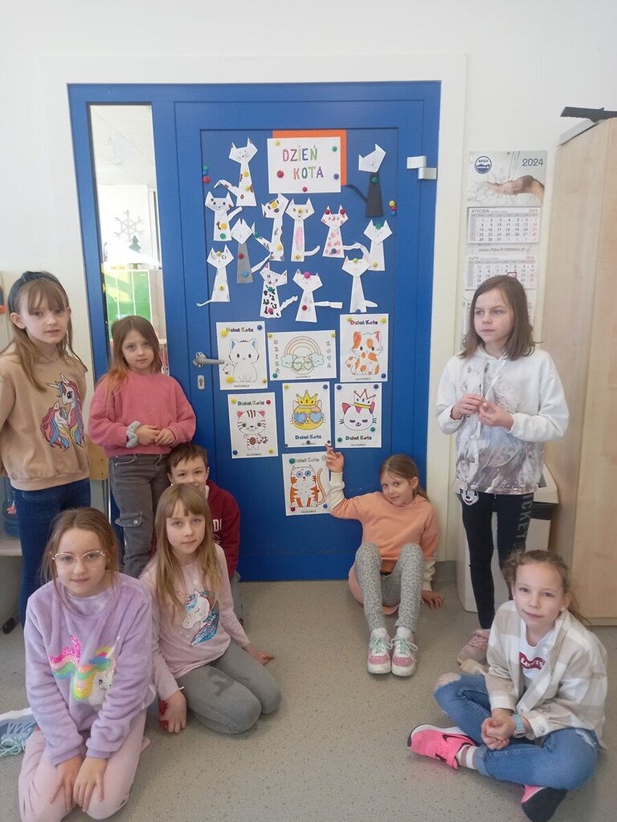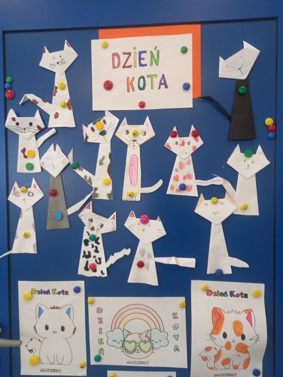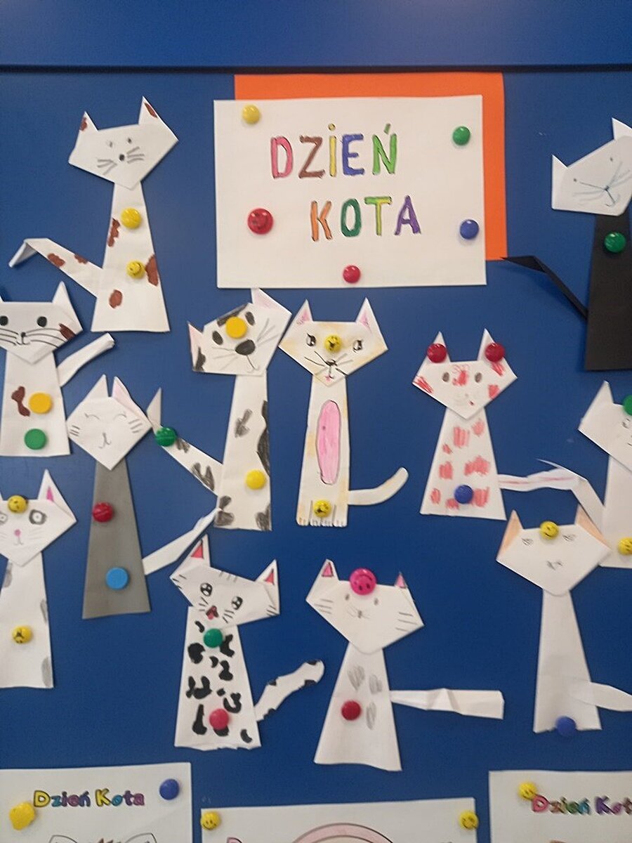 Koty obchodzą swoje święto 17 lutego. Z tej okazji poznawaliśmy ciekawostki o tych zwierzątkach oglądając prezentację multimedialną. Uczniowie opowiadali też o swoich czworonożnych przyjaciołach. Wymienialiśmy rasy kotów, wygląd oraz zasady opiekowania się kotkiem. Na zajęciach plastycznych dzieci wykonały kotki techniką origami. Były też zabawy „Po nitce do kłębka” i „ Kto miauczy”.