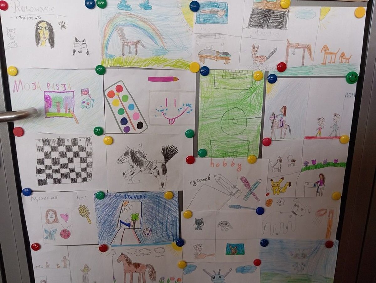 W tygodniu poświęconym pasji skupiliśmy się na rozmowie o ulubionych zajęciach podczas czasu wolnego, zastanowiliśmy się co to jest hobby, czy każdy człowiek je ma i po co ludziom pasje. Dzieci miały okazję opowiedzieć o swoich zainteresowaniach, a także pochwalić się zdjęciami, albumami oraz kolekcją kart i naklejek. W ramach zajęć plastycznych uczniowie wykonali kolorowe prace pt. „Moje hobby”. Wykorzystali do tego kredki, flamastry, pastele, farby, plastelinę.