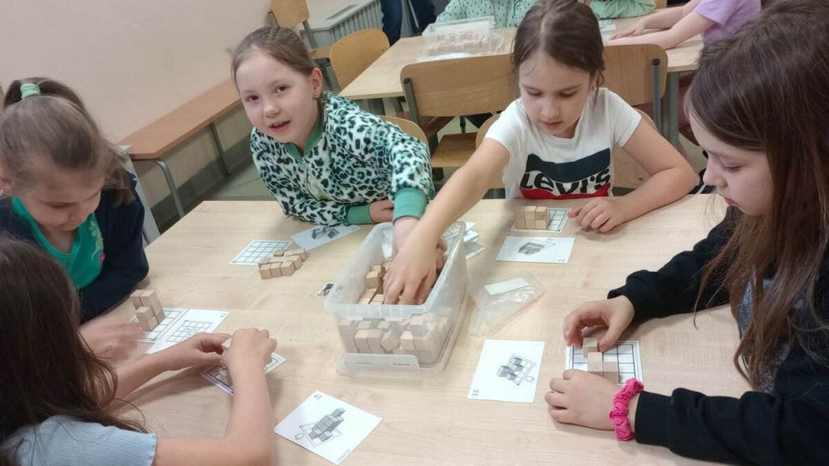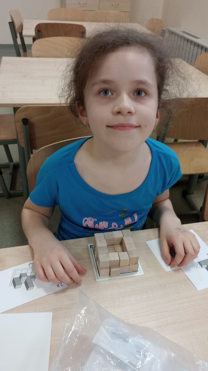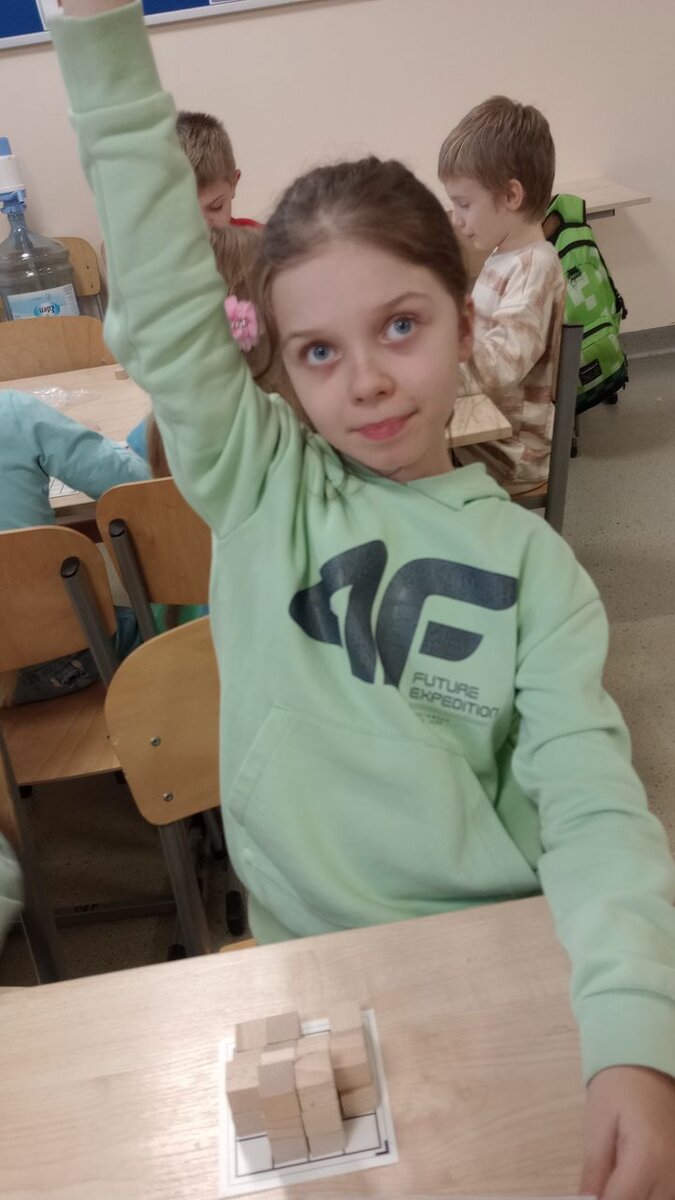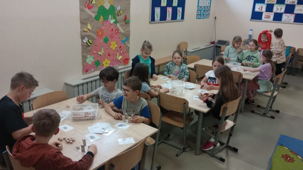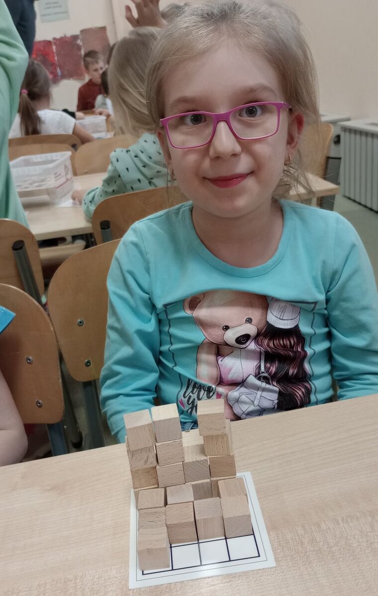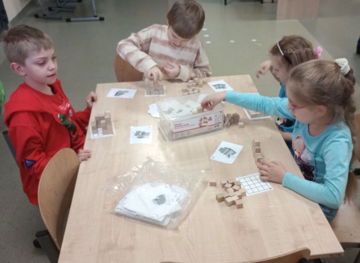 Wykorzystując klocki „Cubo”, zakupione w ramach projektu „Laboratorium Przyszłości”, uczniowie spędzający czas w świetlicy szkolnej wznosili mini budowle konstrukcyjne z drewnianych sześcianów, rozwijając wyobraźnię i myślenie przestrzenne oraz intuicję geometryczną, co było dla nich ciekawą formą nauki przez zabawę.