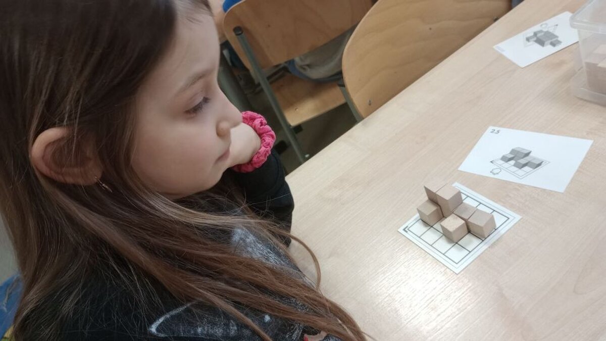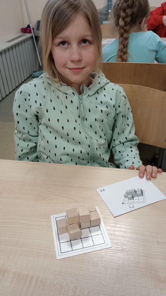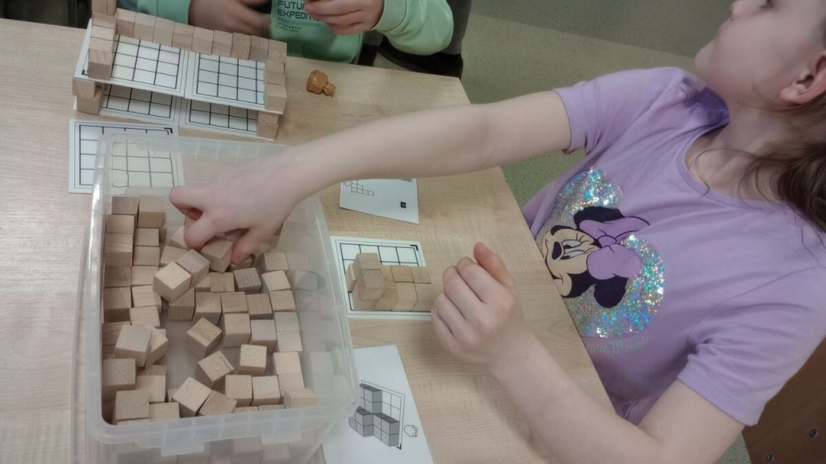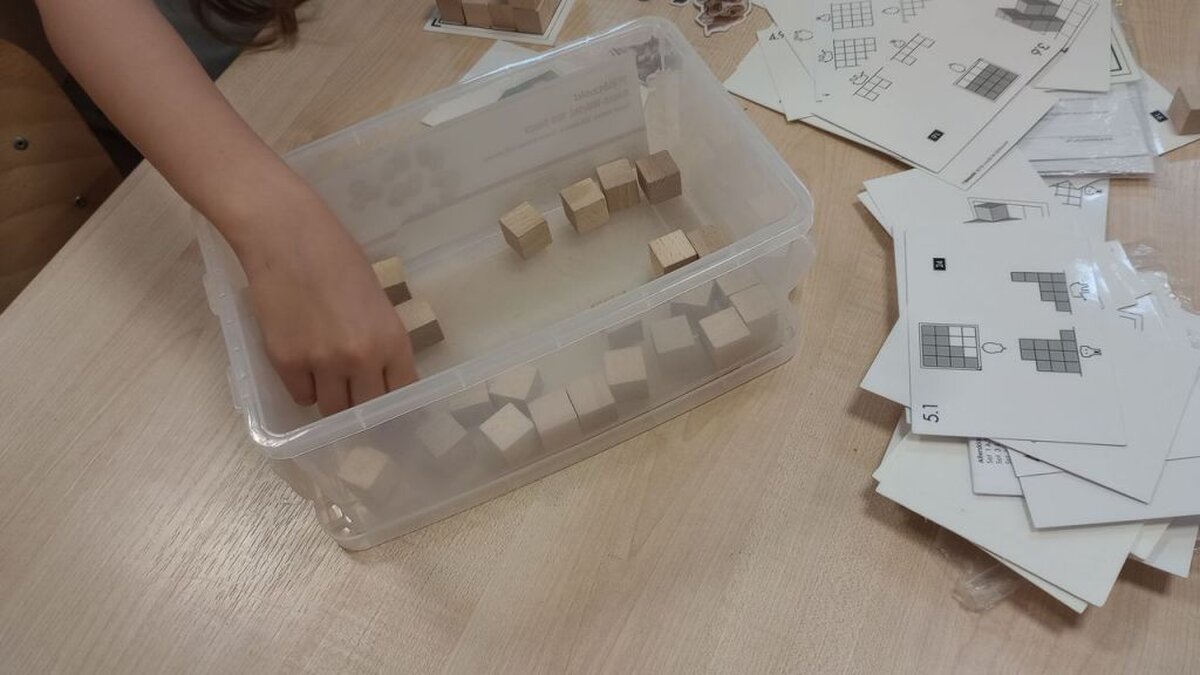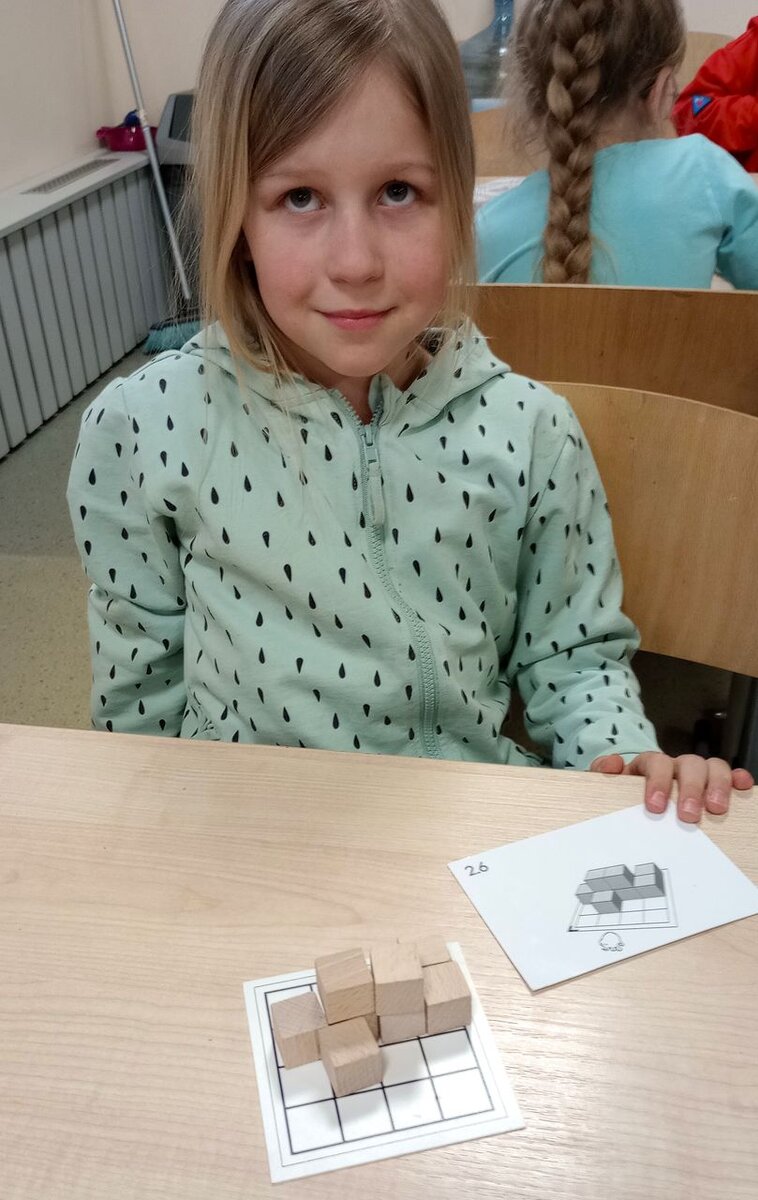 Wykorzystując klocki „Cubo”, zakupione w ramach projektu „Laboratorium Przyszłości”, uczniowie spędzający czas w świetlicy szkolnej wznosili mini budowle konstrukcyjne z drewnianych sześcianów, rozwijając wyobraźnię i myślenie przestrzenne oraz intuicję geometryczną, co było dla nich ciekawą formą nauki przez zabawę.