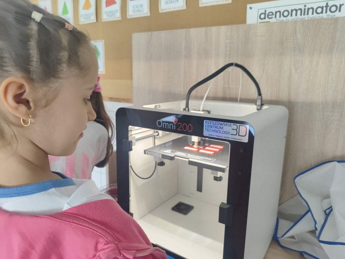 Uczniowie klas 1-3 w dniu 2 maja 2024 r. w ramach zajęć świetlicowych mieli okazję zobaczyć nasze szkolne drukarki 3D oraz poznać zasady ich działania. W związku z Dniem Flagi uczniowie obserwowali wydruk przygotowanych dla nich breloczków w kształcie biało-czerwonej flagi. Nie obyło się bez licznych pytań, często bardzo pouczających. Z pracowni wyszliśmy na pewno z dużym uśmiechem na twarzy, biało-czerwonym breloczkiem w ręce oraz pomysłami na kolejne wydruki.