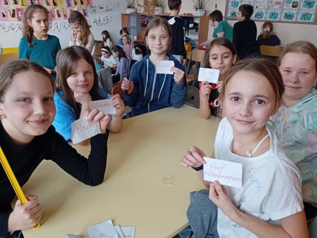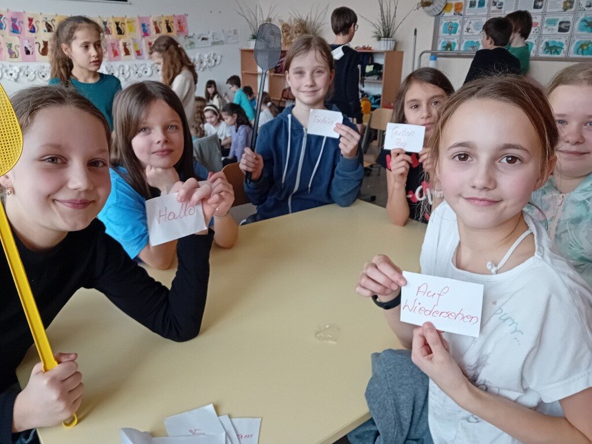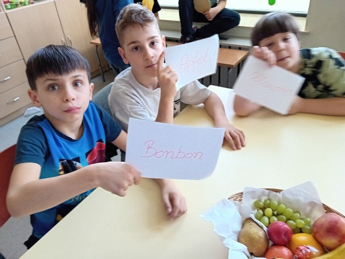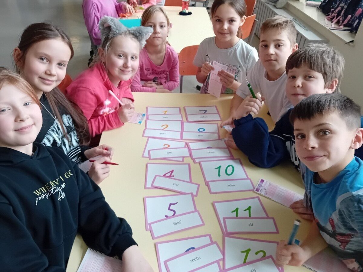 Na świetlicy szkolnej w każdy poniedziałek i czwartek odbywają się darmowe zajęcia z języka niemieckiego. Opieka na świetlicy stwarza wymarzone okazje do nauki tego języka, poznajemy nazwy zwierząt – tuląc pluszaki do siebie, owoce – kosztując je - jak zdrowe i smaczne są, napoje- próbując je.