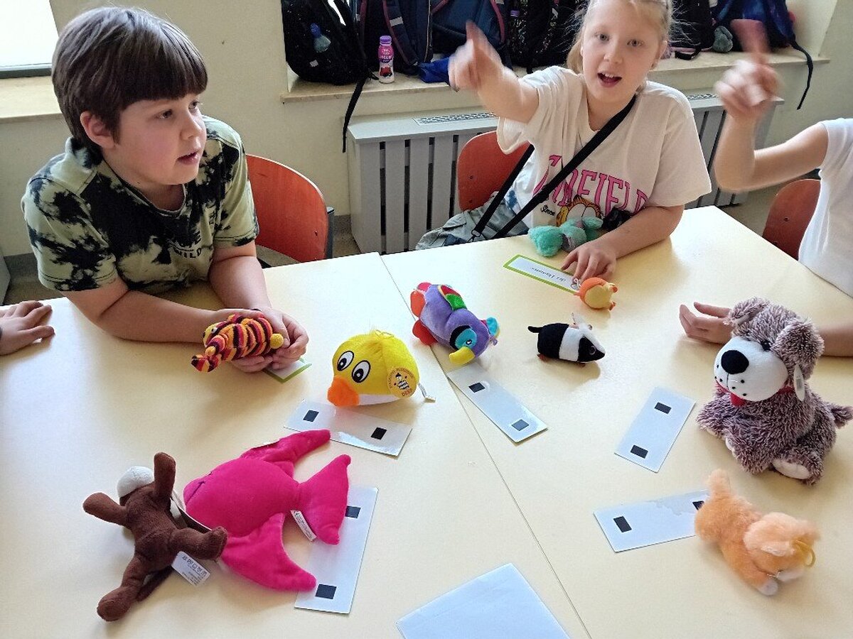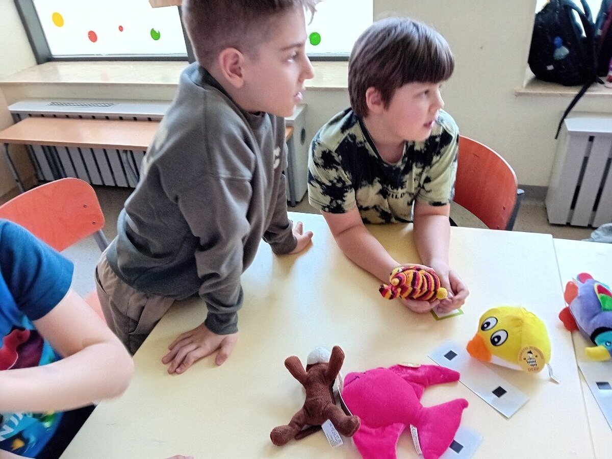 Dzieci bawią się świetnie podczas zajęć, nie wiedząc nawet, jak wiele nowych słów w j. niemieckim już znają: liczą, śpiewają, wyliczają, mówią co lubią jeść, pić, jaki kolor mają na sobie, jakie zwierzątka mają i kochają.