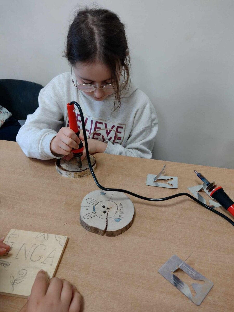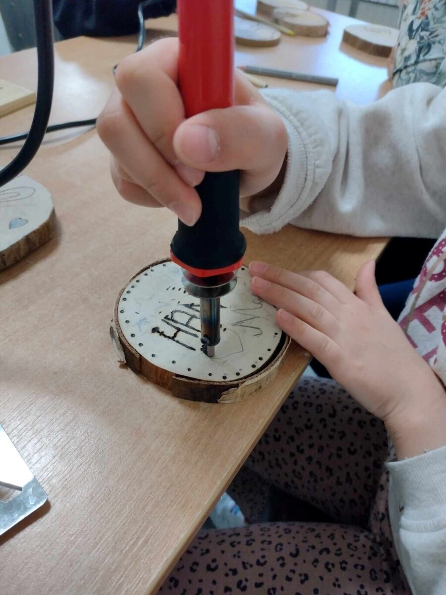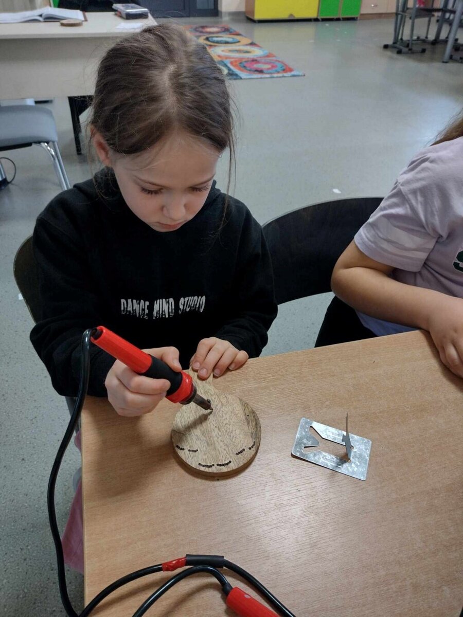 Podczas zajęć uczniowie zapoznali się z zasadami BHP, zaprojektowali piękne wzory, które wypalali na kawałkach drewna. Zajęcia te wymagały dużego skupienia, staranności i cierpliwości, w efekcie czego powstały piękne prace, które można obejrzeć na zdjęciach.