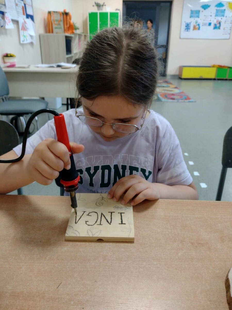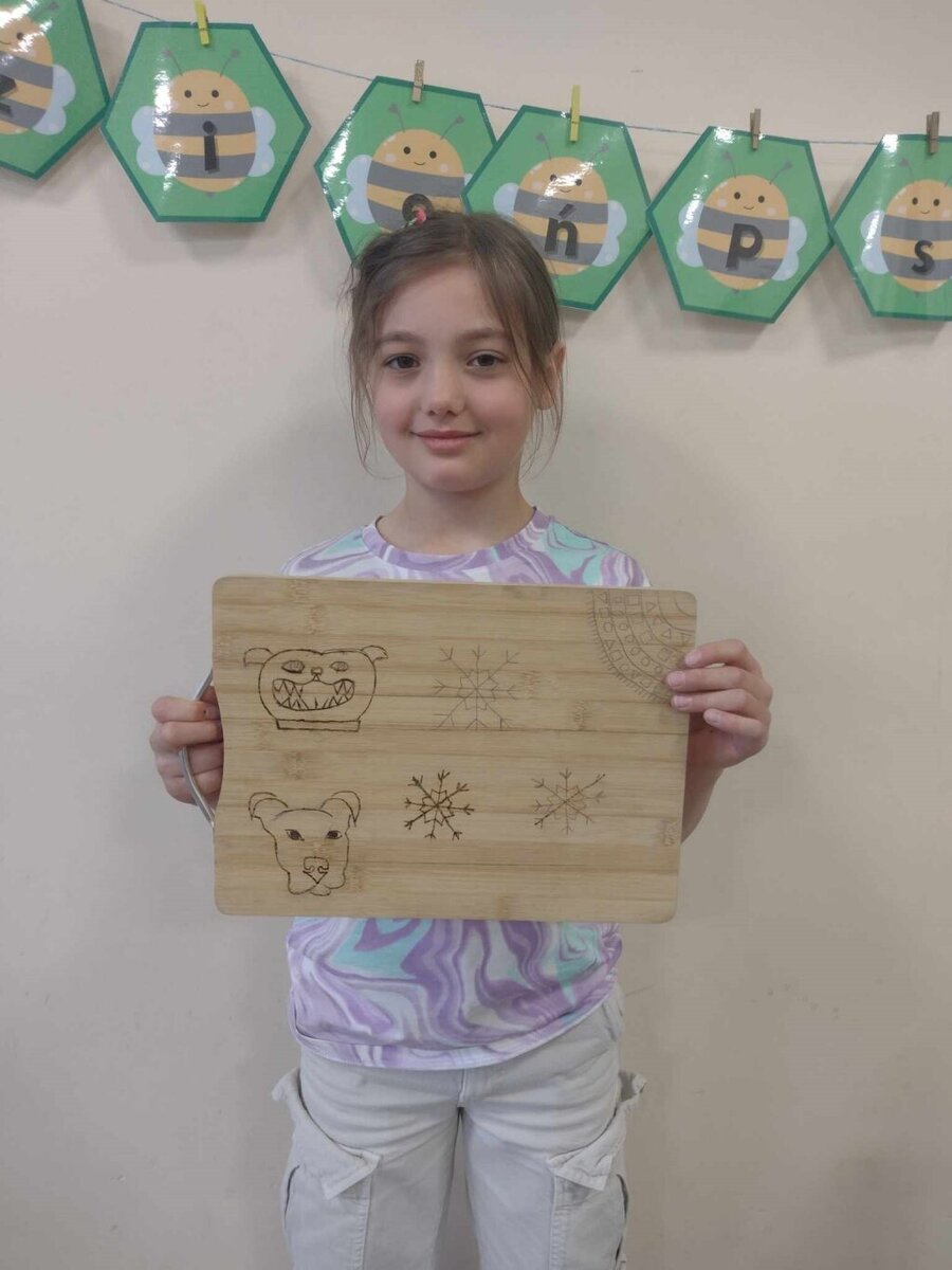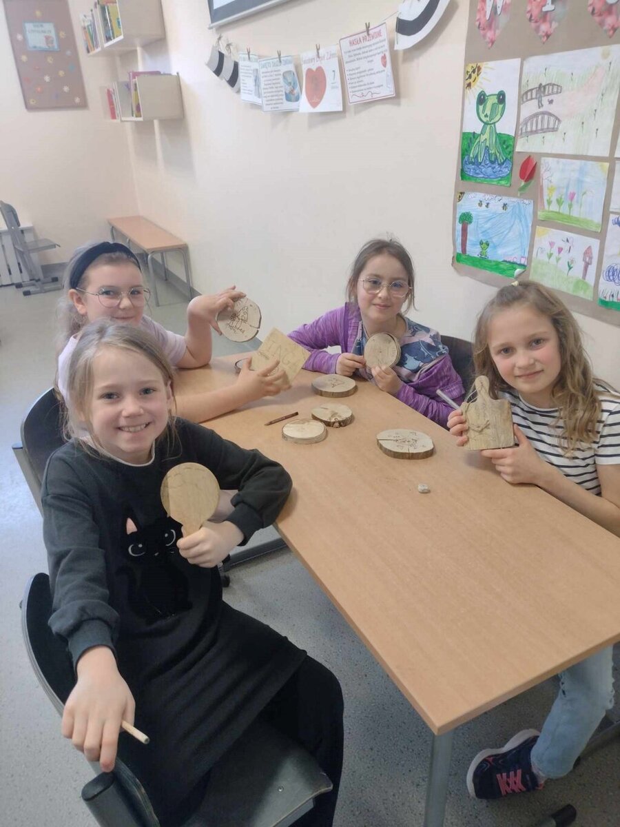 Podczas zajęć uczniowie zapoznali się z zasadami BHP, zaprojektowali piękne wzory, które wypalali na kawałkach drewna. Zajęcia te wymagały dużego skupienia, staranności i cierpliwości, w efekcie czego powstały piękne prace, które można obejrzeć na zdjęciach.