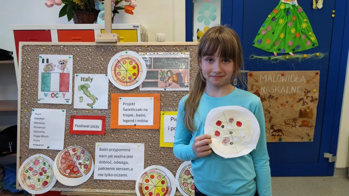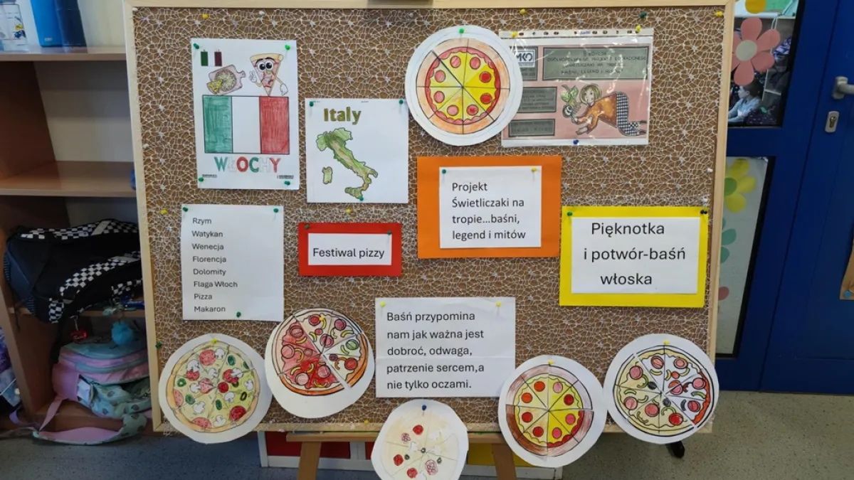 Te zajęcia z Projektu pt. Świetliczaki na tropie…baśni, legend i mitów poświęcone były Włochom. Obejrzeliśmy film edukacyjny przedstawiający ten piękny europejski kraj Była też kolorowanka włoskiego przysmaku -pizzy składana z kawałków jak puzzle. Dzieci poznały podczas zajęć treść włoskiej baśni pt. Pięknotka i potwór oraz jej przesłanie, aby być dobrym, patrzeć sercem ,a nie tylko oczami. Zajęcia zakończyły się wykonywaniem ozdób z makaronu podczas, których uczniowie wykazali się sprytem i kreatywnością. Efektowne ,makaronowe korale, kolie i bransoletki można zobaczyć w świetlicowej galerii.