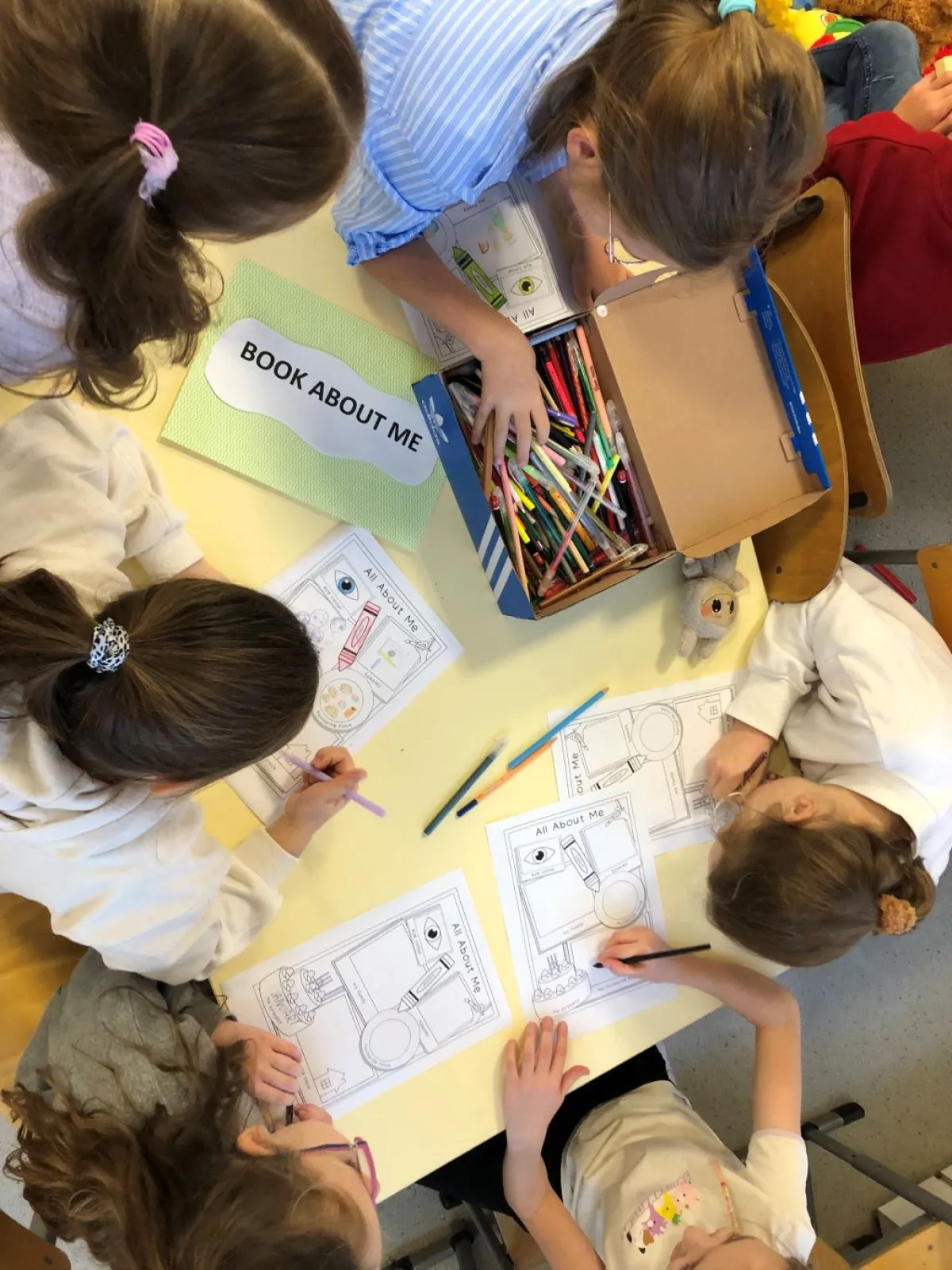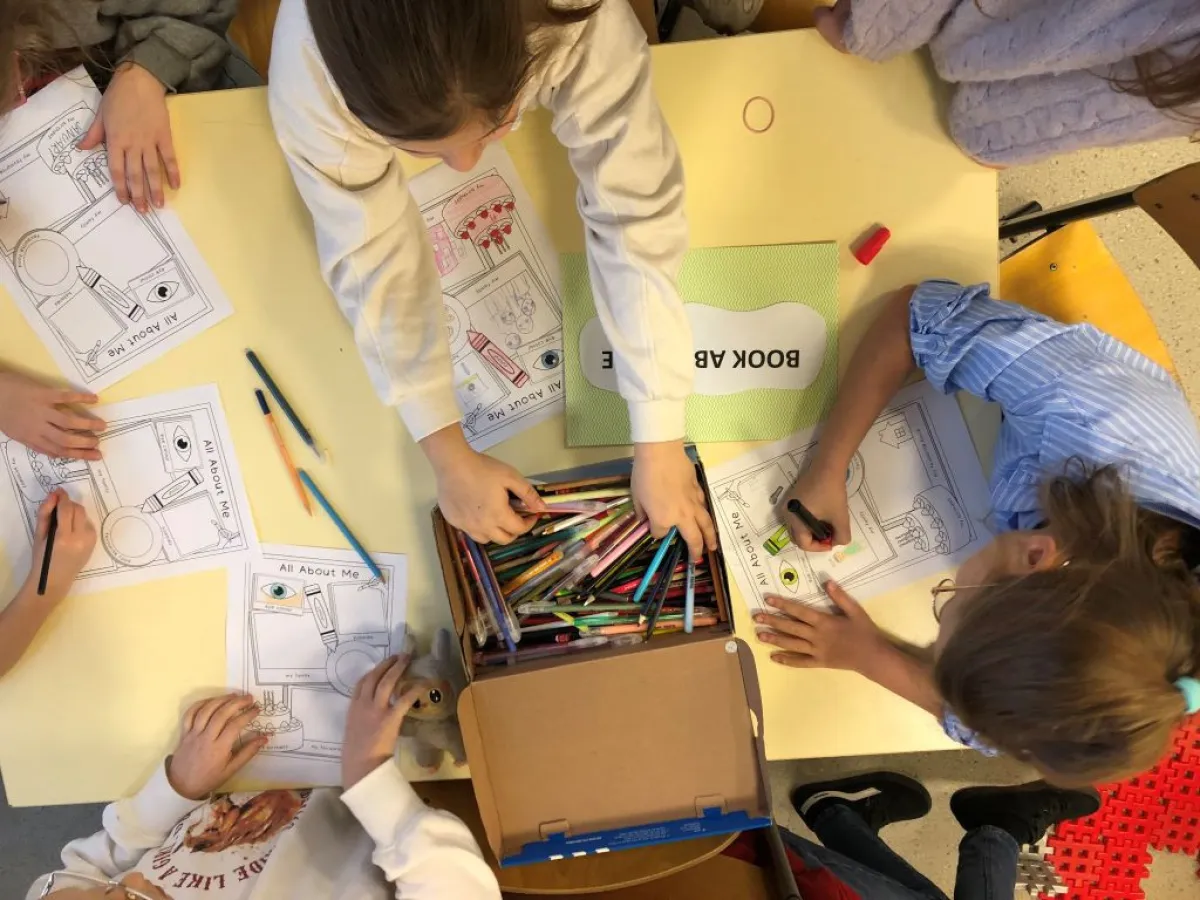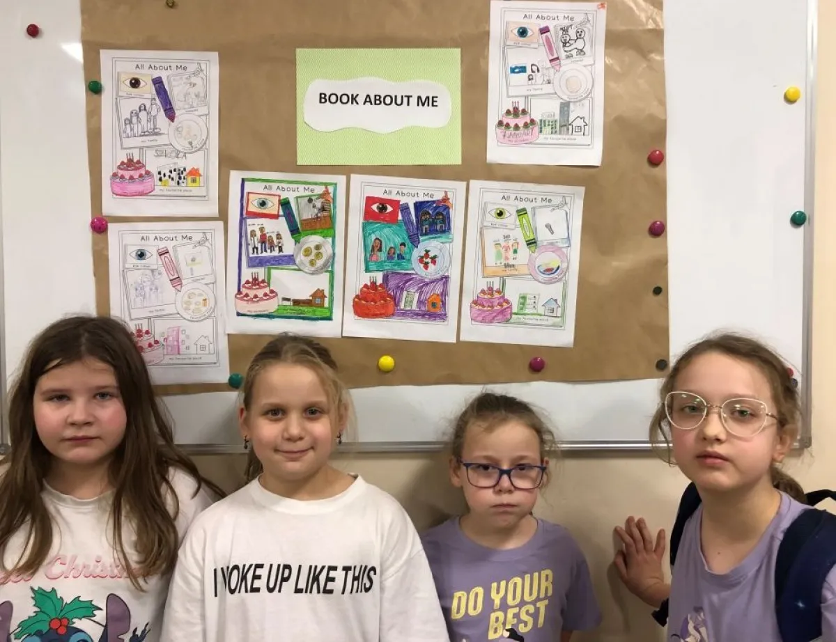 Realizacja zadania „Book about me” w ramach Ogólnopolskiego Projektu Edukacyjnego „Angielski jest Fun-tastyczny” polegała na uzupełnieniu przez dzieci informacji dotyczących ich osoby, takimi jak imię ( Name), wiek (Age), ulubiony kolor (Favourite colour), ulubione miejsce (Favourite place) itp. na przygotowanych kartach pracy. Zgodnie z opisem , istotnym elementem było pokolorowanie rysunku, co miało na celu rozwijanie kreatywności i zdolności manualnych. Poprzez realizację zadania , dzieci miały okazję do poznania i utrwalenia podstawowego słownictwa angielskiego związanego z opisywaniem siebie. Zadanie to jest przykładem metody nauki języka angielskiego poprzez zabawę i działania plastyczne, co jest zgodne z celami projektu, który ma pokazać uczniom, że nauka angielskiego może być „fun-tastyczna”.