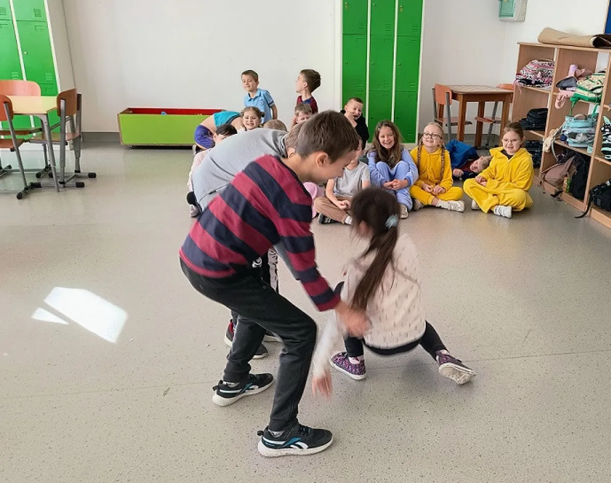 Na zajęciach dzieci odgrywały krótkie scenki (np. w sklepi, w autobusie etc.) pokazując zachowanie pełne kultury i szacunku. Ponadto dzieci poznały dobranockę z dawnych lat, wspólnie obejrzeliśmy krótką animację – Reksio Sportowiec.