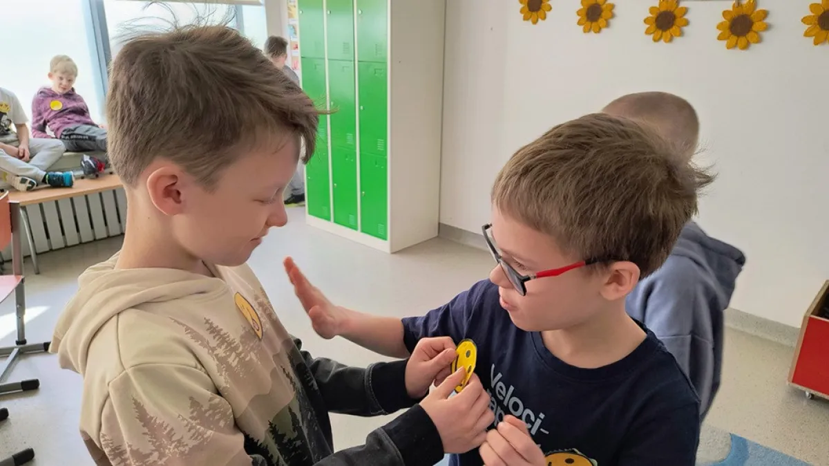 Na zajęciach rozmawialiśmy o życzliwości, a następnie wspólnie wykonywaliśmy życzliwe minki – emotikonki, które dzieci rozdawały sobie na wzajem. Ponadto uczniowie zapoznali się z dobranocką z dawnych lat „Gucio i Cezar”.