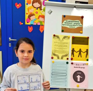 Szacunek, to podstawa wszystkich wartości, szacunek do siebie samych i innych. Na pierwszych zajęciach w ramach programu "Wartościowe medale" rozmawialiśmy o szacunku, z którym wiąże się troska o czyjeś dobro i uczucia, grzeczność wyrażona naszym zachowaniem i słowami. Uczniowie z klas 2b i 2d poznali "Przyjaciół z ulicy Kwiatowej i ich przygody". Na początku, dzieci wysłuchały opowiadania "Lilka i jej wakacje" i na jego podstawie odpowiadały na pytania do wysłuchanego tekstu, wymyślały również inne zakończenia tej historii. Poza tym, na zajęciach uczniowie wykonywali szereg ćwiczeń związanych z tematem zajęć, m.in.: tworzyli własną mapę marzeń, tworzyli komiksy do opowiadania "Lilka i jej wakacje", tworzyli portrety pt. "PAN SZACUNEK" - król wszystkich wartości. Znalazł się również czas na burzę mózgów, która dotyczyła zagadnień: "Szanuję ludzi za...", "Szanuję swoich bliskich gdyż...", "Szanuję siebie za...".