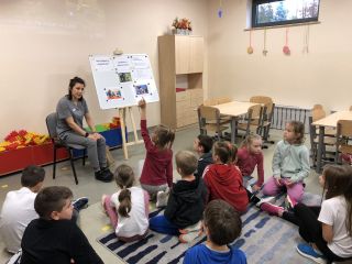 W ramach realizacji kolejnego zadania z innowacji pedagogicznej pt. „Ciekawskie świetliczaki” w dniu 9.11. 2022 r. odbyło się spotkanie z lekarzem weterynarii panią Doktor Aleksandrą Makar. W spotkaniu brały udział dzieci z klasy 1e, 3c i 3g. Celem spotkania było poznanie specyfiki pracy weterynarza, zdobycie wiedzy na temat dbania i pielęgnowania zwierząt domowych. Na nasze zajęcia pani weterynarz przyniosła wiele swoich narzędzi, których używa w codziennej pracy w gabinecie. Dzieci miały okazję zobaczyć jak wygląda profesjonalny strój weterynarza. Uczniowie opowiadali o zwierzętach, które mają w domach, a także zadawali dużo pytań . Pani Doktor opowiadała dużo ciekawostek o zwierzętach oraz o najczęstszych dolegliwościach, które dotykają naszych pupili. Na koniec spotkania pani Doktor wyjaśniła dzieciom czym jest dogoterapia , komu może pomóc i jakie są najlepsze rasy psów do dogoterapii ?