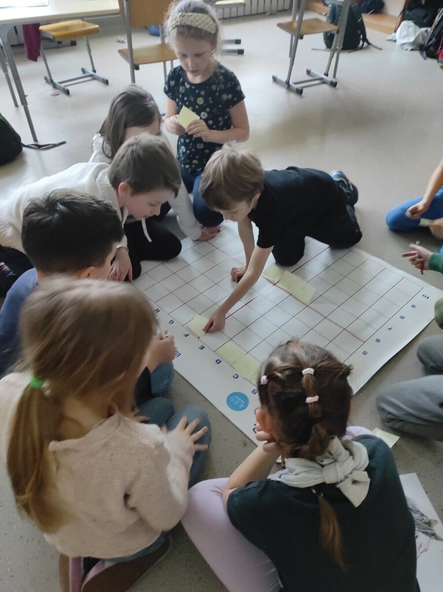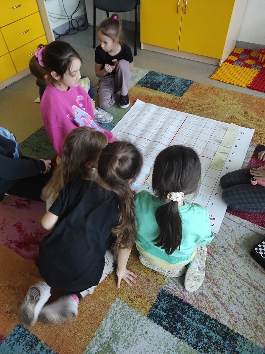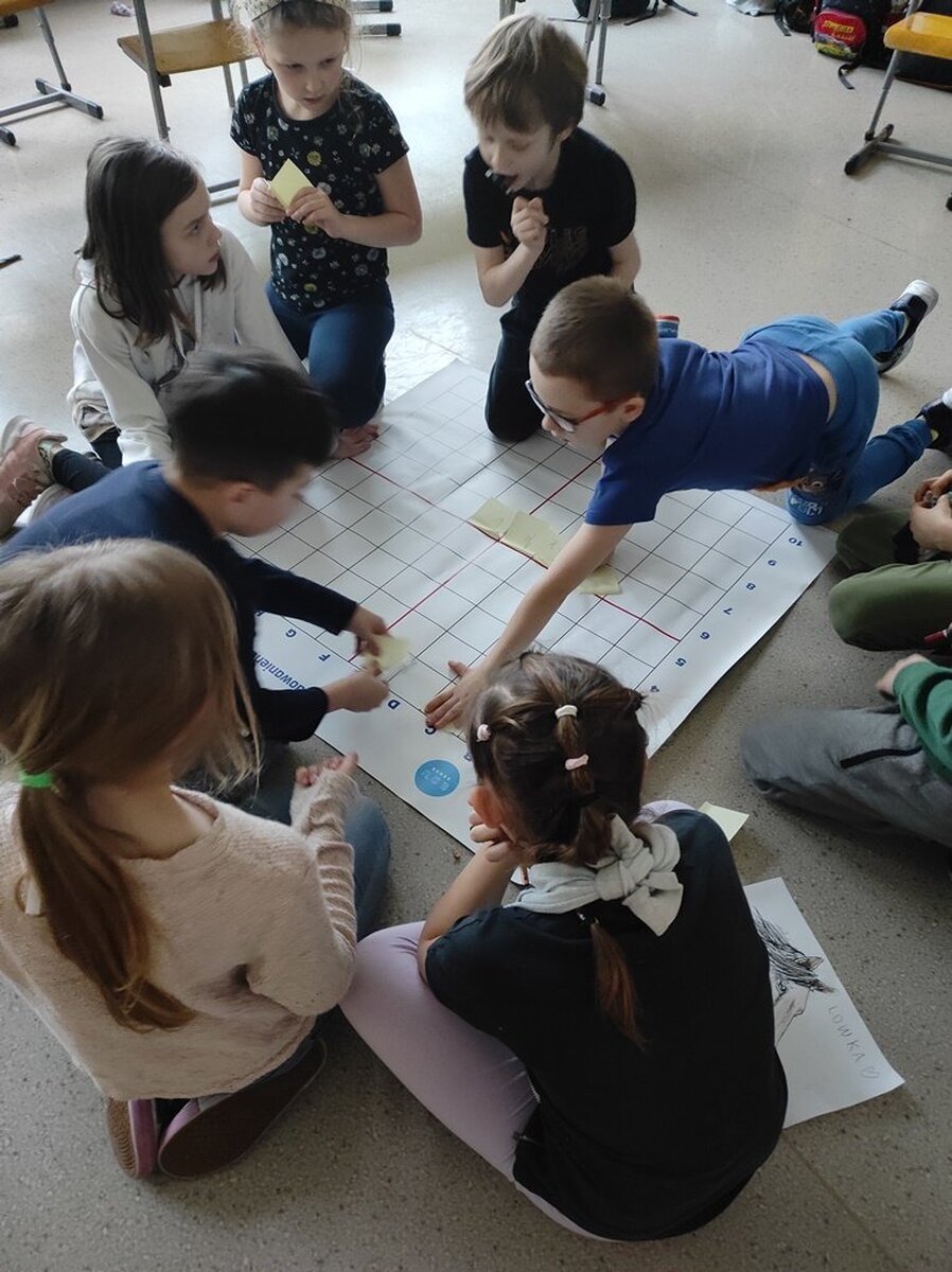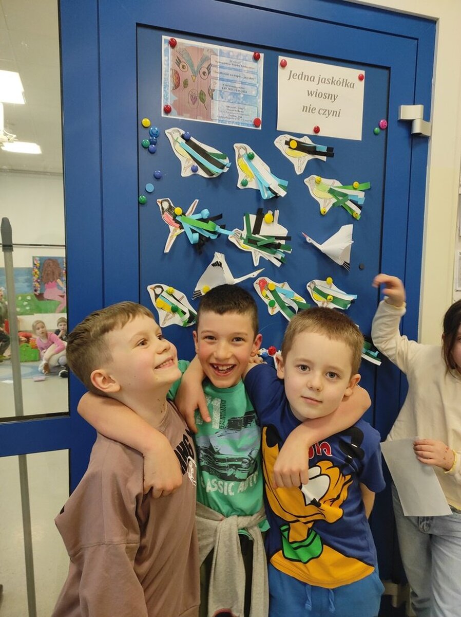 Podczas kolejnych zajęć w ramach Ogólnopolskiego Projektu "Świetliczaki na tropie... przysłów" grupa Odkrywców poznawała kolejne przysłowie - "Jedna jaskółka wiosny nie czyni". Uczniowie poznali znaczenie przysłowia i próbowali odnieść je do codziennego życia. Następnie zaprezentowano ptaki, które przylatują do Polski na wiosnę. Uczniowie wykazali się dużą znajomością takich ptaków. Następnie, przy użyciu mat do kodowania, zagraliśmy w "Ptasie statki", czyli wykorzystując zasady gry w "Statki" umieszczaliśmy na planszy nazwy ptaków. Gra była naprawdę wciągająca. Na koniec zajęć uczniowie wykonali kolorowe ptaki.