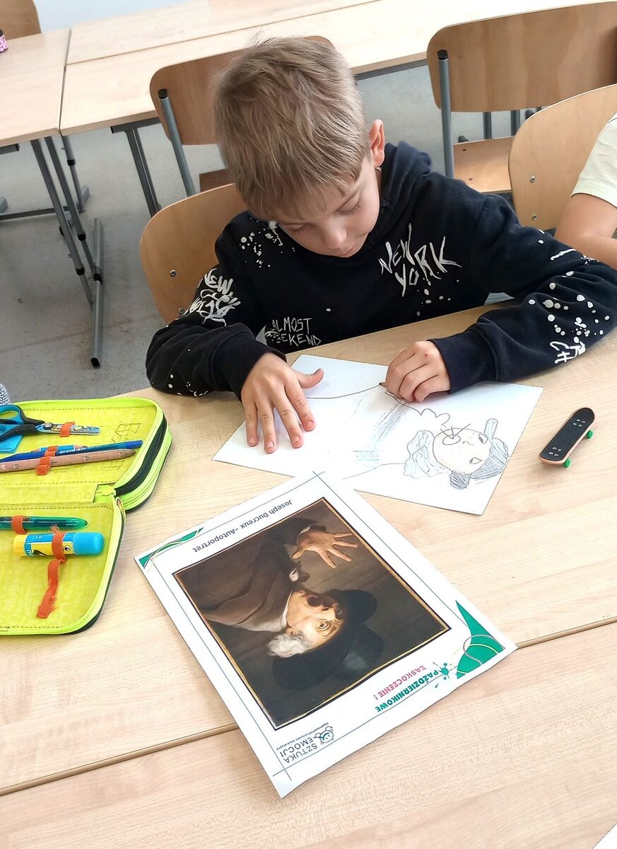 Na zajęciach sięgnęliśmy po twórczość wielkich artystów w poszukiwaniu zaskoczenia i tak odnaleźliśmy wielkie emocje w obrazach! Podjęliśmy próbę odtworzenia wybranych dzieł!