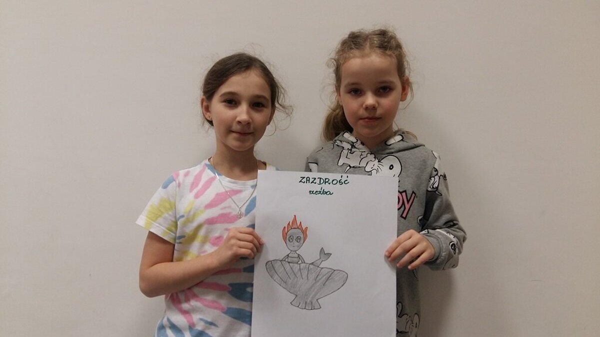 Uczestnicy zajęć zapoznali się także z dziełami różnych rzeźbiarzy i po rozmowie na temat obejrzanych dzieł, przedstawiających zazdrość, stworzyli swoje własne w formie prac plastycznych.