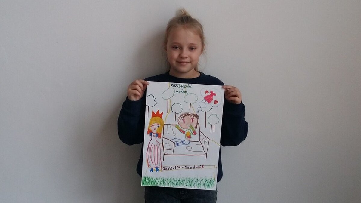 Zazdrość była tematem kolejnych zajęć świetlicowych w ramach projektu „Sztuka emocji”. Rozmowy o niej rozpoczęliśmy od słuchowiska „Uczucia Maksa” i odcinka pt.: „Maks i zazdrość”, po wysłuchaniu którego, uczestnicy zajęć próbowali odpowiedzieć na pytania czym jest zazdrość, jak ją wyrażamy, czy jest to dobra czy zła emocja oraz czy możemy ją oswoić, aby była naszym sprzymierzeńcem a nie wrogiem. Pomocne w rozmowie i wymianie myśli okazały się plansze demonstracyjne i karty metaforyczne.