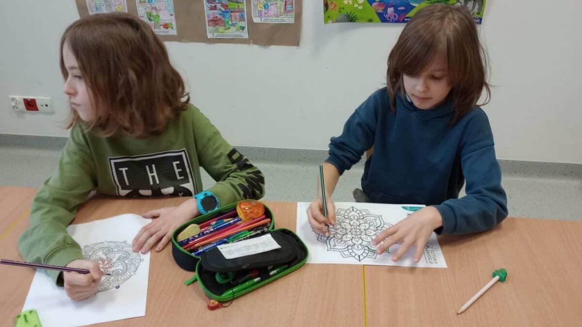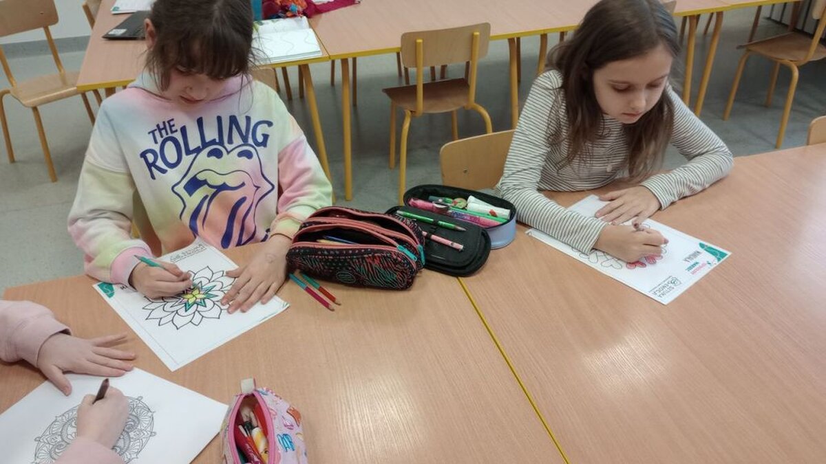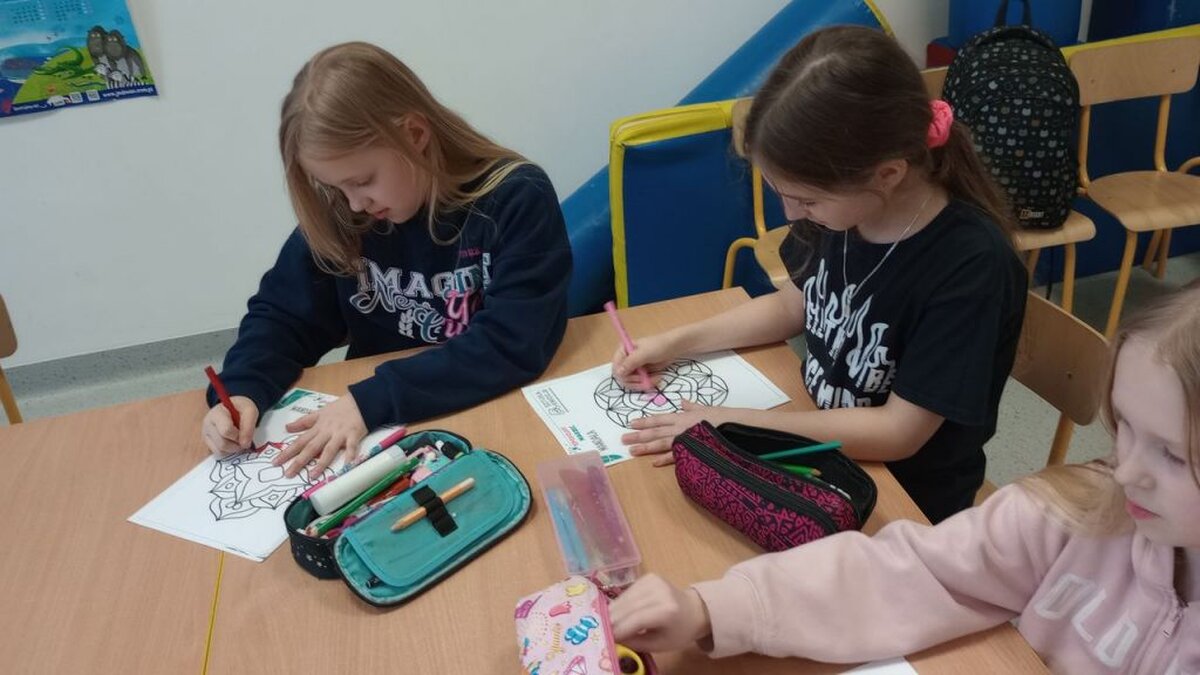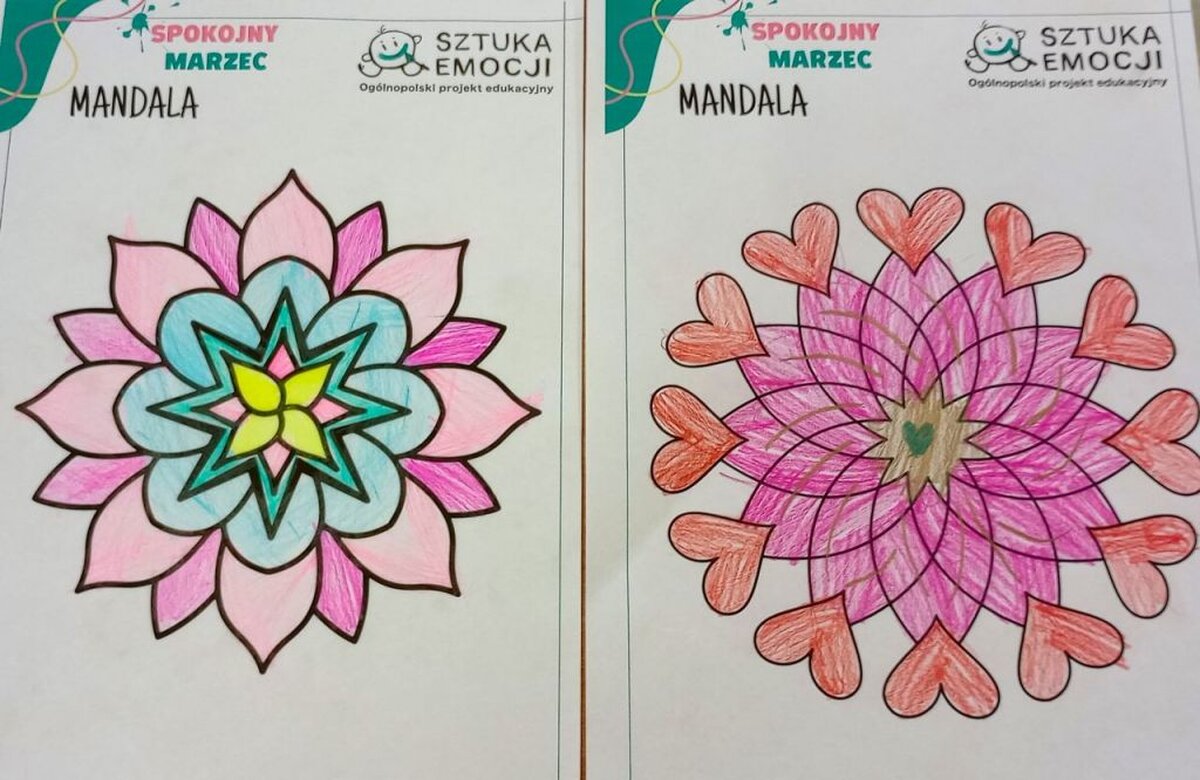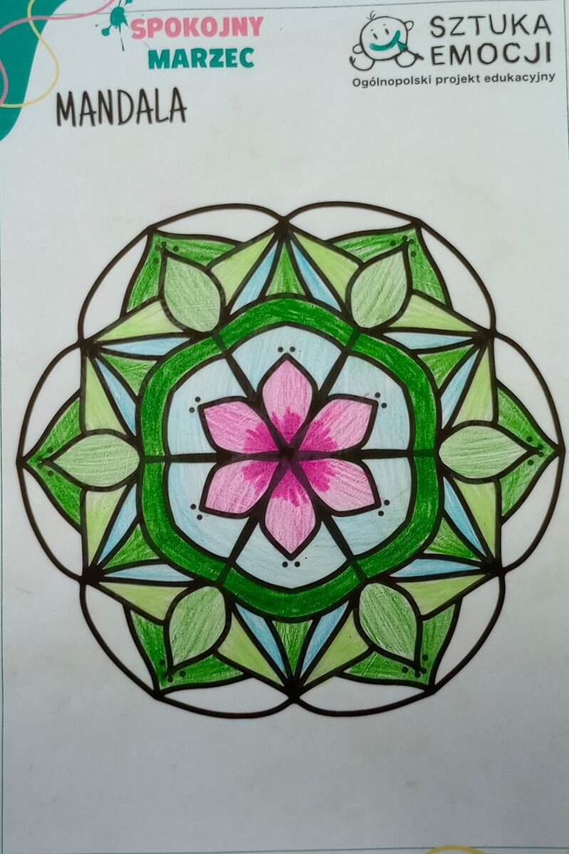 Muzyka łagodzi obyczaje, dlatego na koniec zajęć sięgnęliśmy do muzyki klasycznej (Bach, Chopin, Beethoven) kolorując mandale, odbiór okazał się niezwykle kojący.