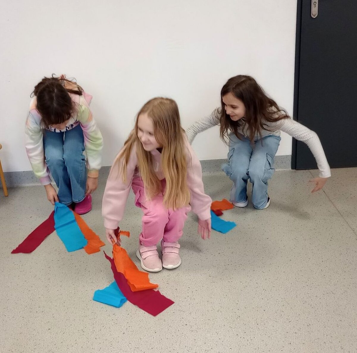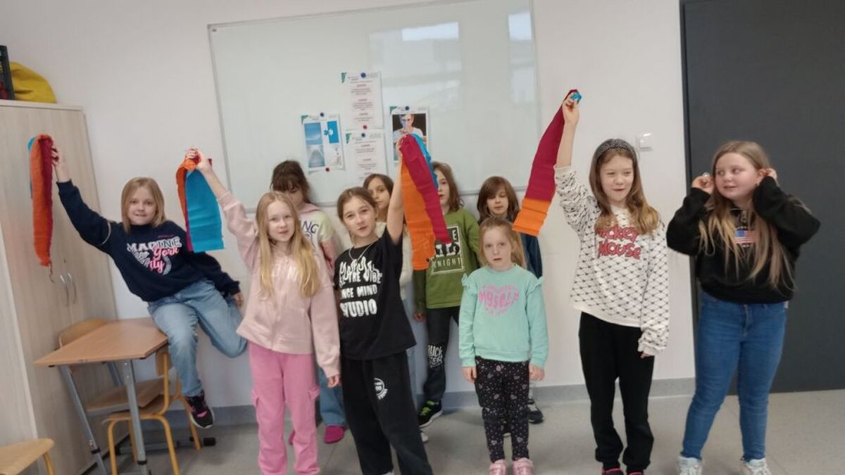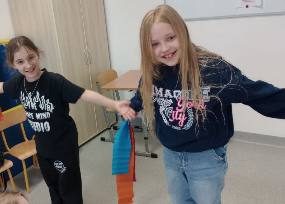 Następnie uczniowie podzieleni na grupy stworzyli barwne rekwizyty z bibuły, które posłużyły do stworzenia choreografii pt. „Taniec kwiatów” ukazujący spokój. Potwierdził się fakt, iż taniec jest fenomenalnym narzędziem do wyrażania emocji.