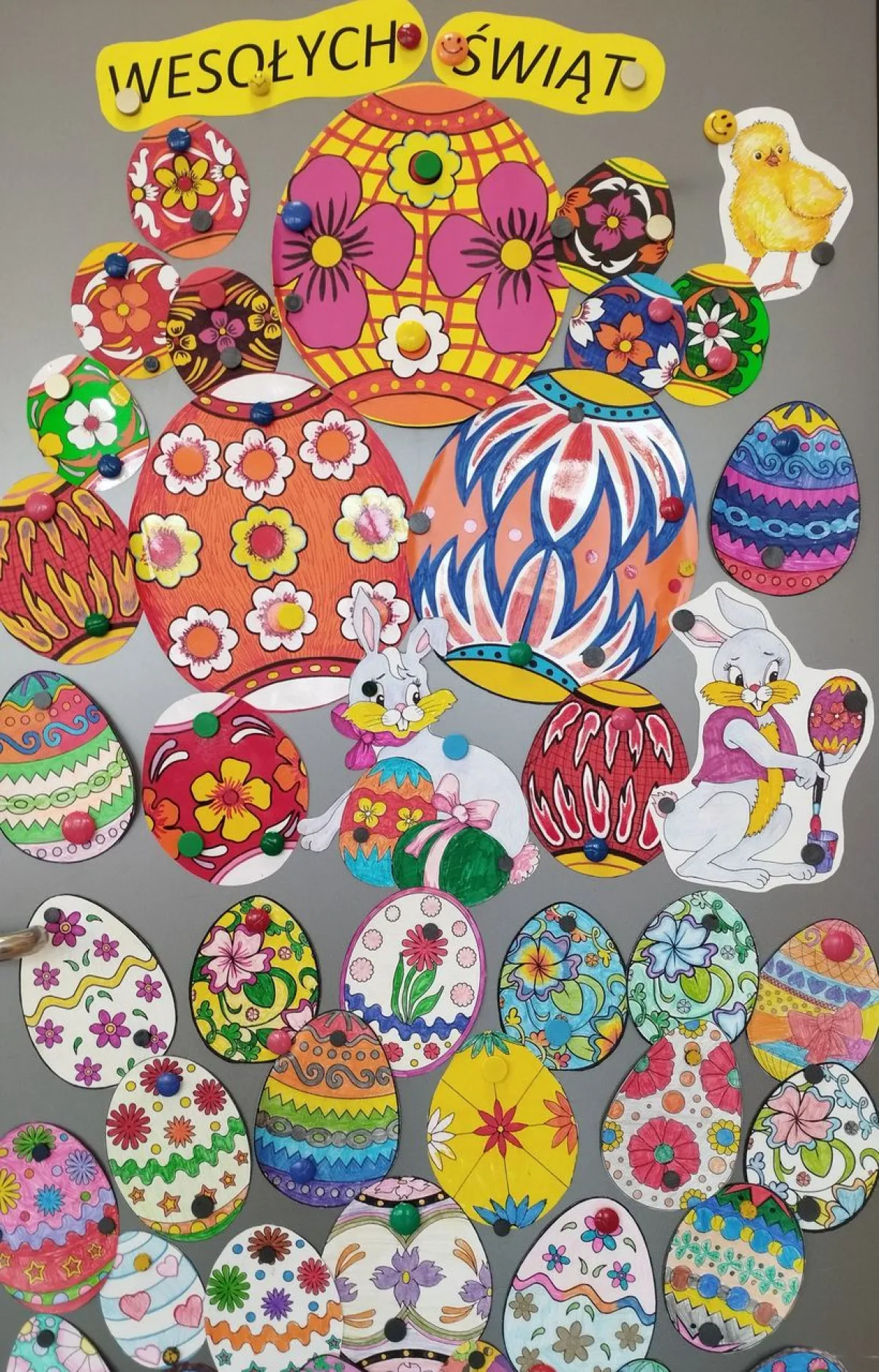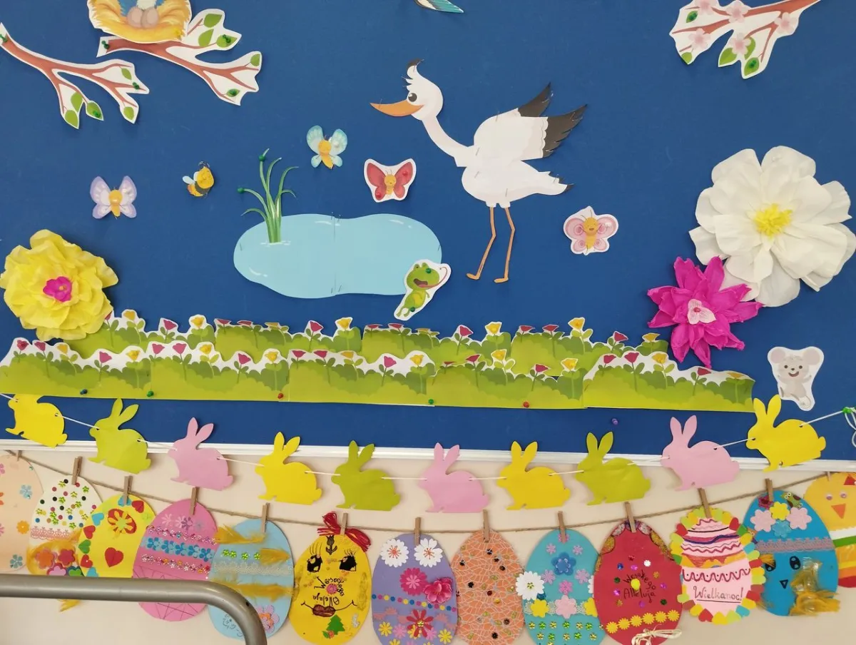 Tydzień przedświąteczny spędzaliśmy na rozmowach, dotyczących tradycji wielkanocnych, święcenia pokarmów, śmigusa – dyngusa oraz tego, w jaki sposób nasze rodziny obchodzą te święta. Rozwiązywaliśmy quizy i zagadki wiosenno- świąteczne. Nasze sale świetlicowe również już w pełni „rozkwitły” pięknem wiosennych ozdób i dekoracji. Wspólnie z uczniami wykonywaliśmy girlandy, stroiki oraz wianuszki z kolorowego papieru.