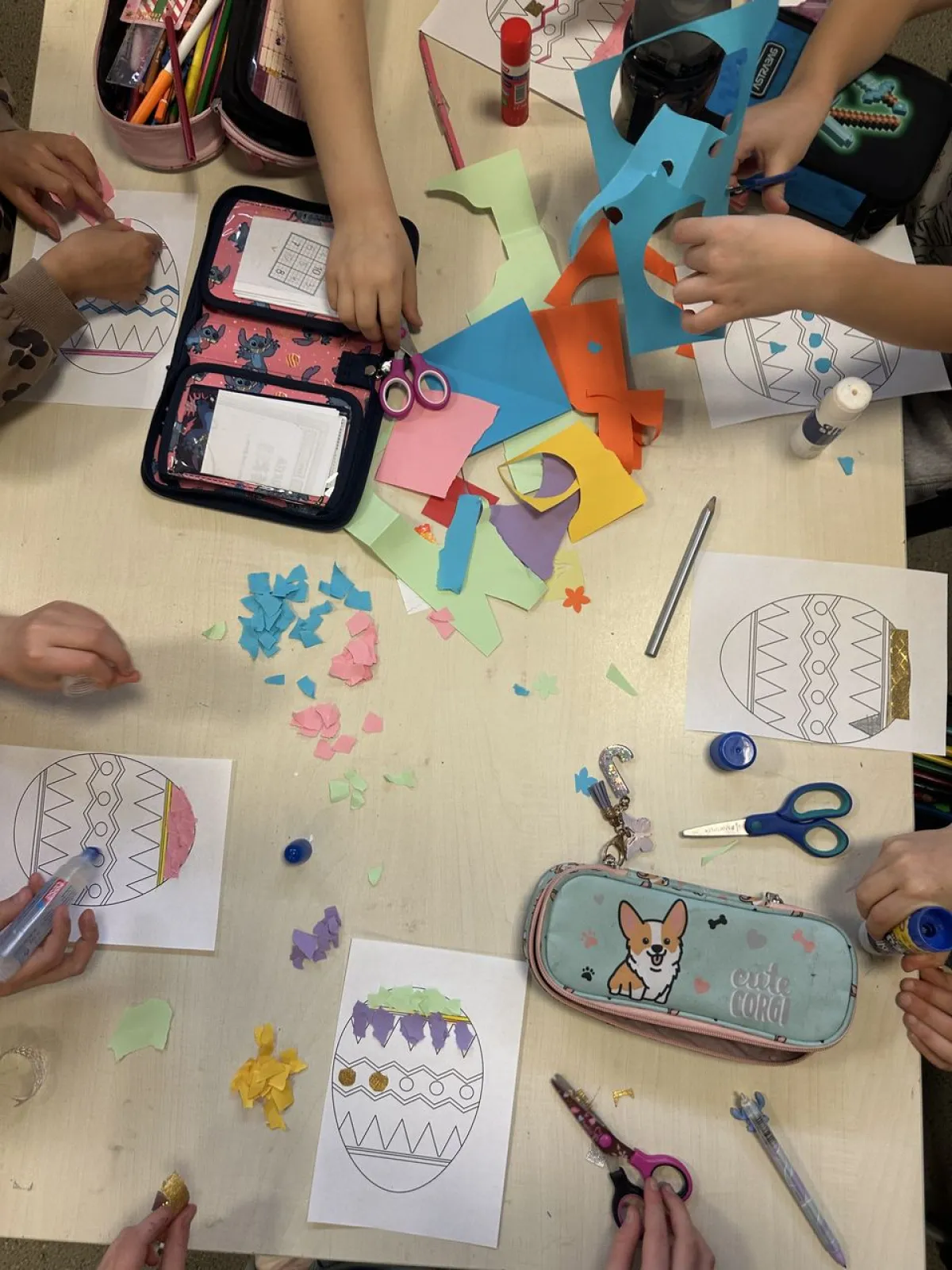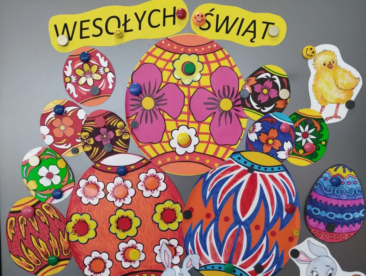 Aby urozmaicić świetlicowy czas i wzbogacić ofertę zajęć, zorganizowaliśmy dla uczniów konkurs plastyczny „Najpiękniejsza pisanka” oraz warsztaty plastyczne pt. „Pisanki i zajączki”. Wykonaliśmy także piękne kartki świąteczne, którymi obdarujemy najbliższych oraz uczyliśmy się poprawnie formułować życzenia świąteczne.