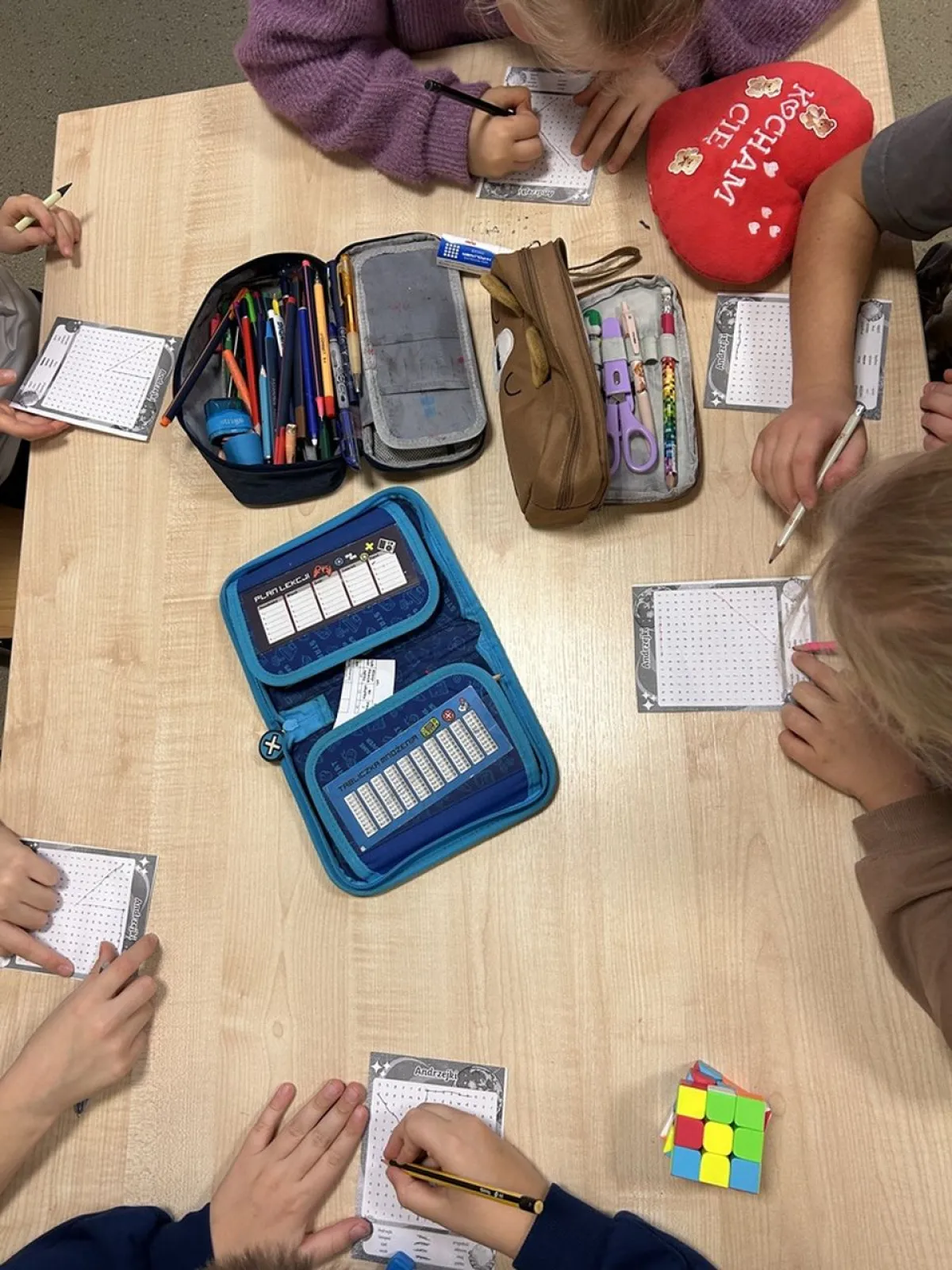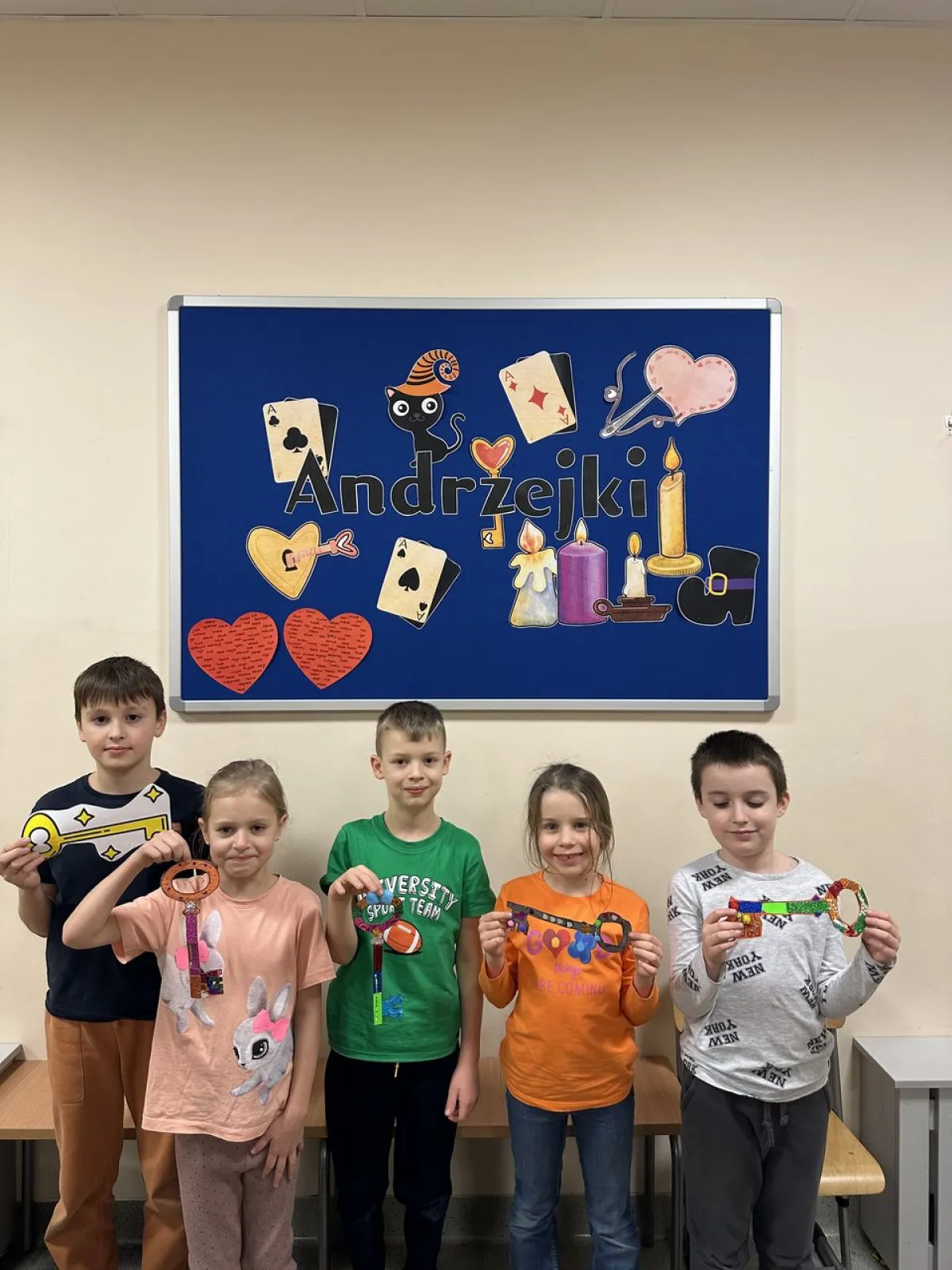 W kolejnych dniach tego tygodnia poznawaliśmy tradycje i obyczaje związane z Andrzejkami. Wspólnie wykonaliśmy dekorację sal świetlicowych na zabawy andrzejkowe. Dzieci przygotowały prace plastyczne pt. Czarodziejski klucz korzystając z materiałów kreatywnych takich jak: brokaty, bibuła i wstążka. Następnie odbyły się wróżby i zabawy muzyczne dla dzieci: Latający kapelusz, Krzesełka, zabawy z balonami. Zabawy andrzejkowe miały na celu integrację grup świetlicowych i aktywne spędzanie czasu w świetlicy.