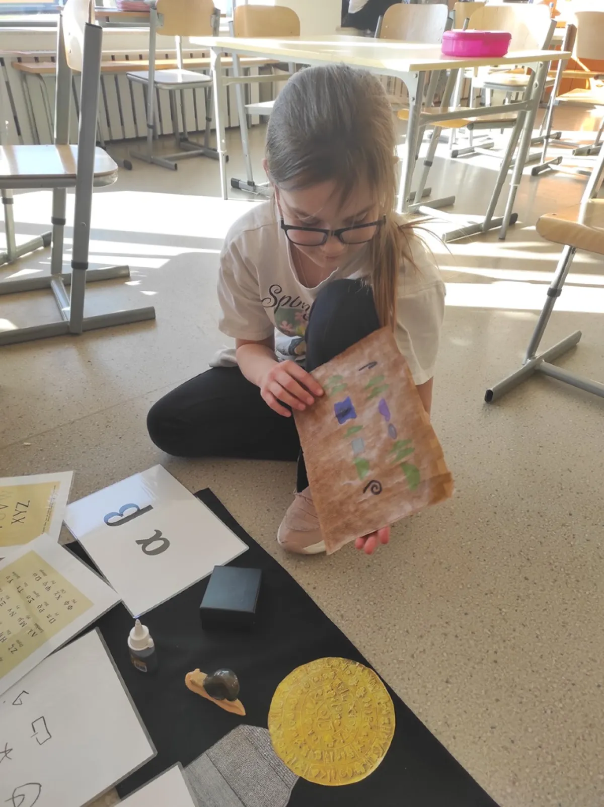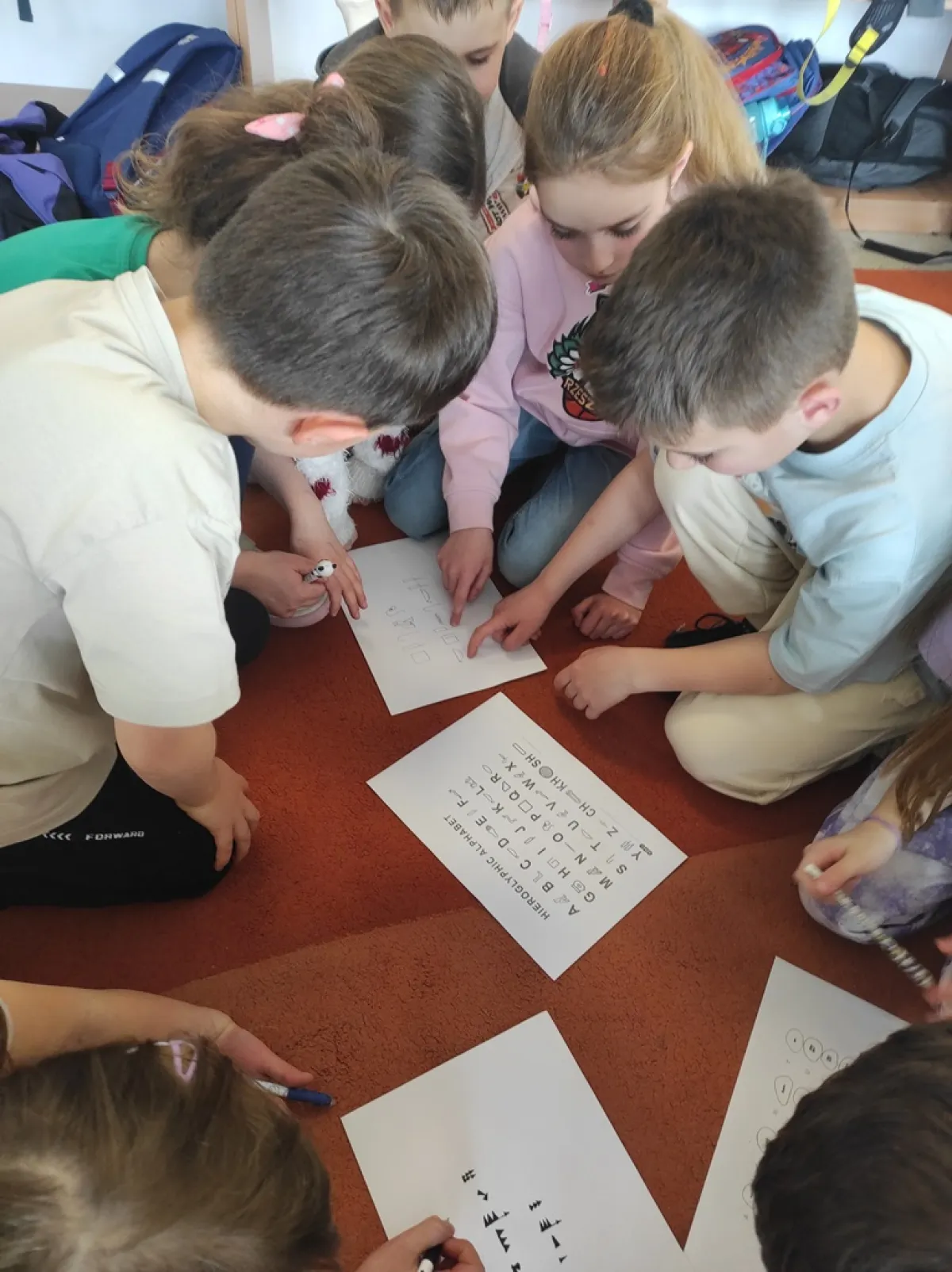 Dzięki różnorodnym, angażującym zadaniom, młodzi odkrywcy mogli zobaczyć, jak pismo zmieniało się na przestrzeni dziejów. Zaczynając od najstarszych form pisma, takich jak malunki naskalne, po rozwój skomplikowanych systemów, jak pismo klinowe czy pismo chińskie, dzieci poznały ewolucję tego niezwykle ważnego wynalazku.
