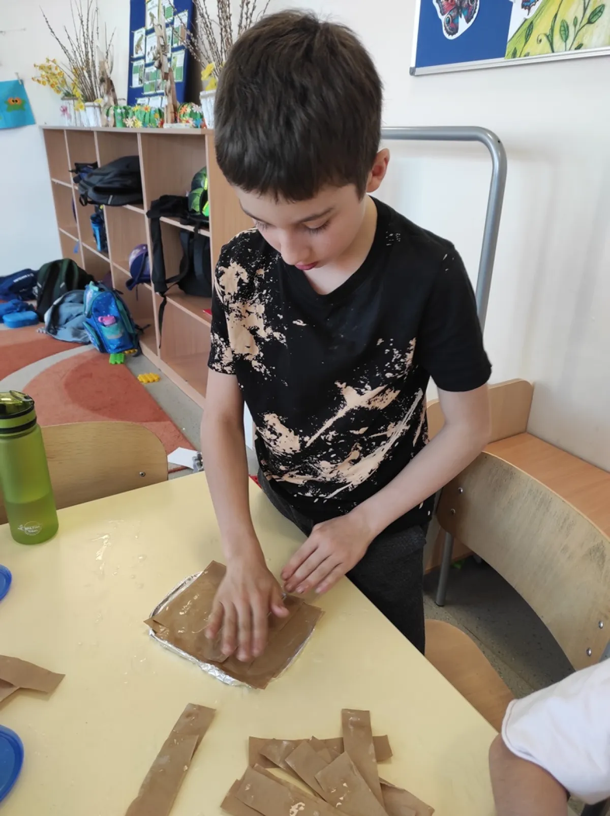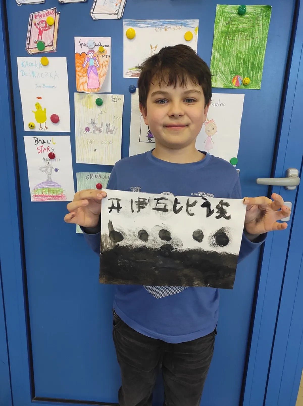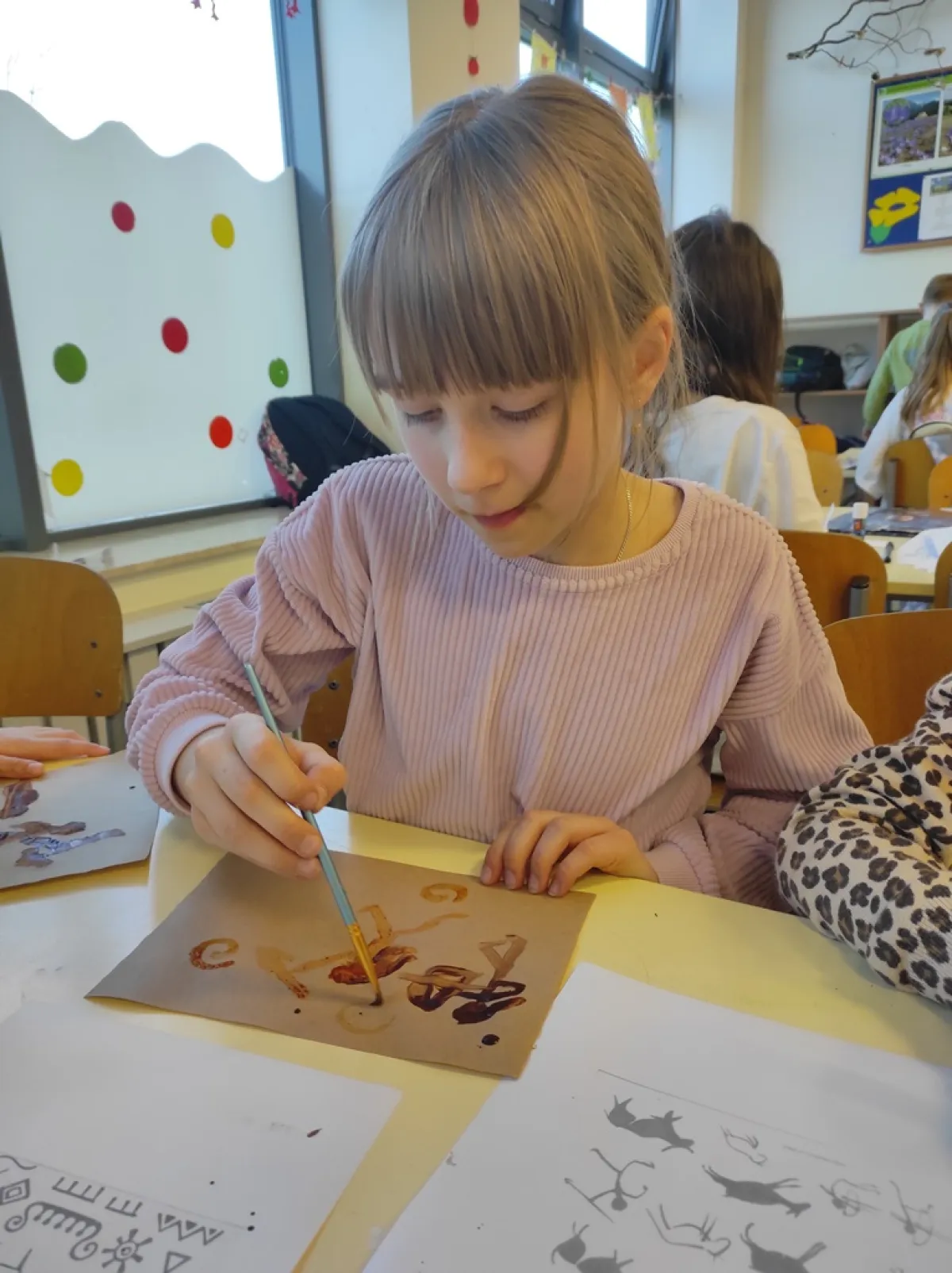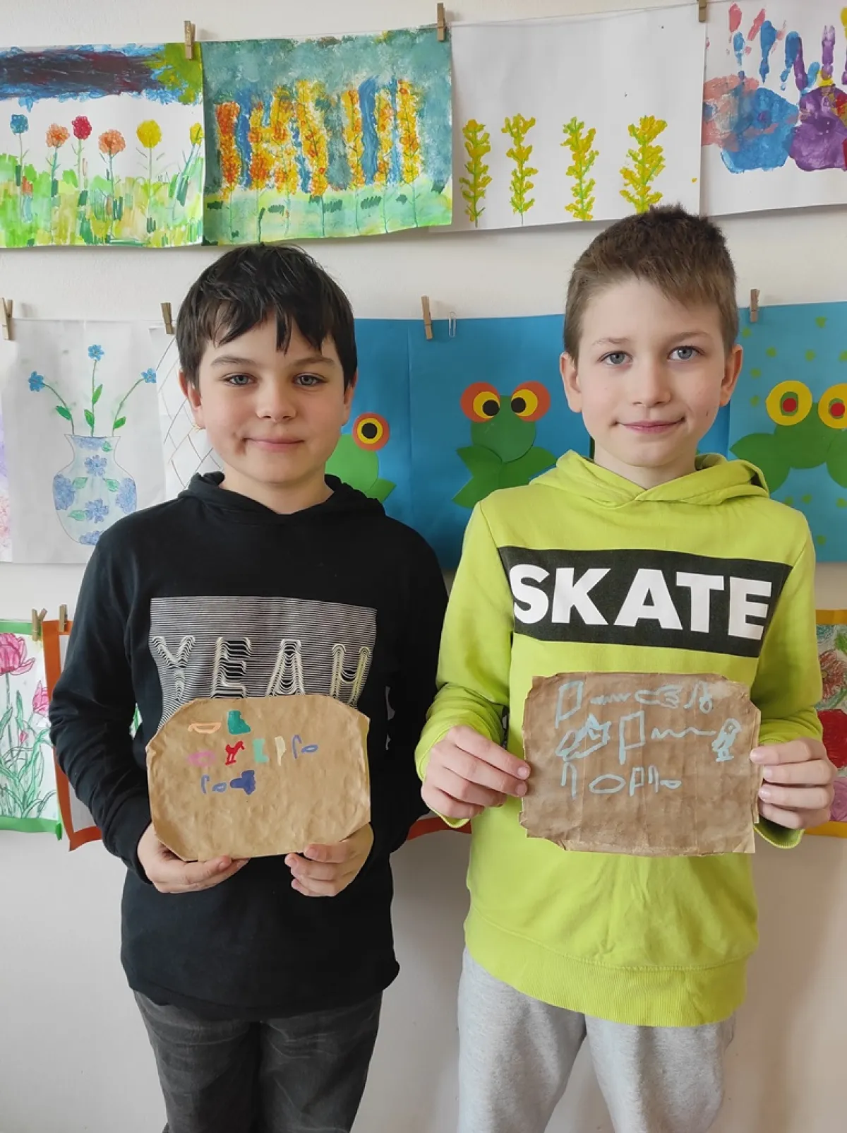 Mali artyści spróbowali swoich sił w tworzeniu malunków naskalnych, nawiązując do pierwotnych form komunikacji, które były stosowane przez naszych przodków. Używali w tym celu naturalnych farb, zrobionych z przypraw. Podczas zajęć mali twórcy tworzyli własne papirusy, na których rysowali hieroglify, inspirując się starożytnymi Egipcjanami. Kolejnym krokiem było lepienie glinianych tabliczek, na których dzieci mogły pisać pismem klinowym – jednym z najstarszych systemów pisma. Następnie, młodzi uczniowie przenieśli się do Chin, gdzie pisali swoje imiona pismem chińskim, a także tworzyli wiadomości, odciskając literkowe pieczątki.
