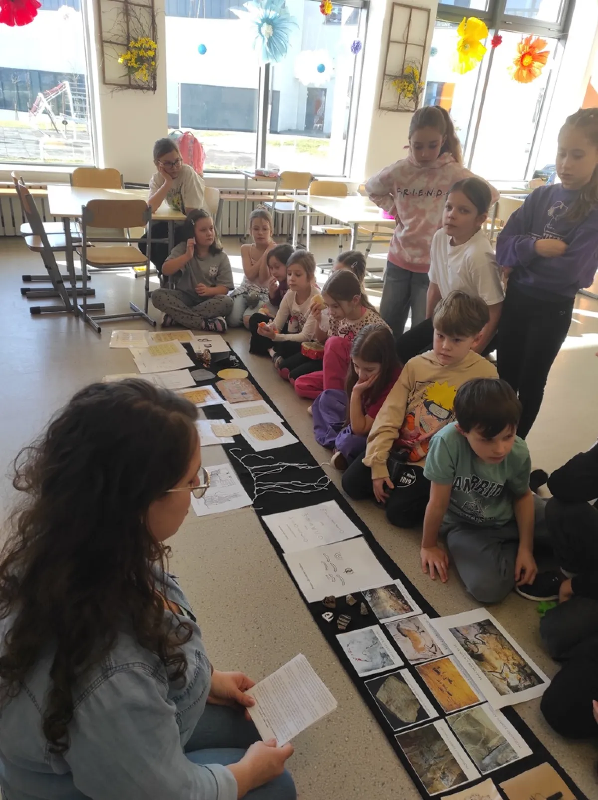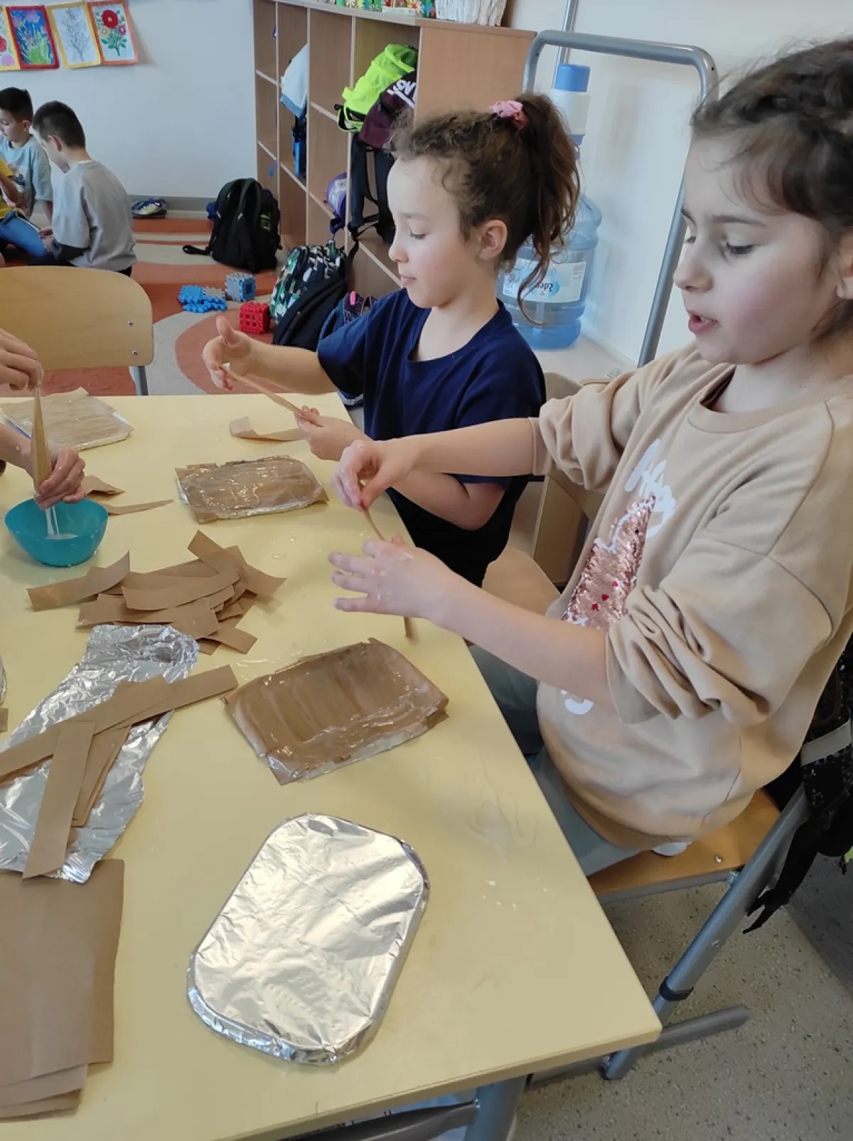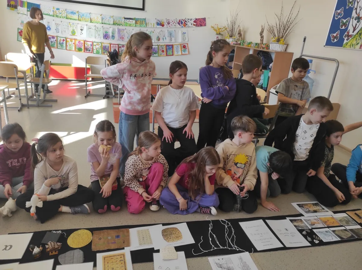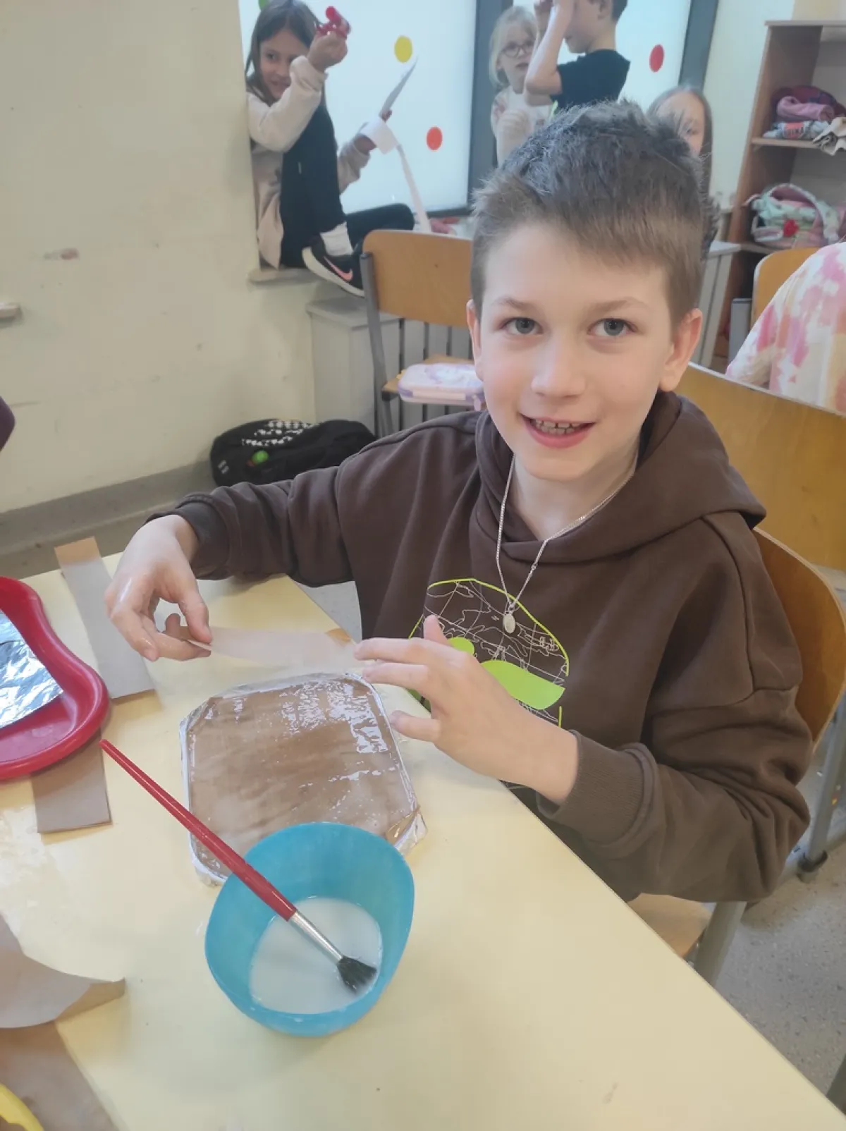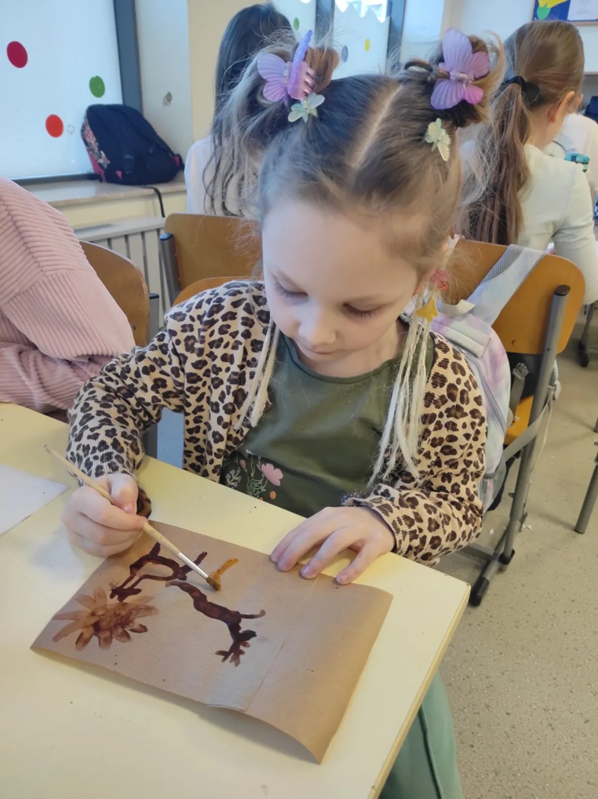 Mali artyści spróbowali swoich sił w tworzeniu malunków naskalnych, nawiązując do pierwotnych form komunikacji, które były stosowane przez naszych przodków. Używali w tym celu naturalnych farb, zrobionych z przypraw. Podczas zajęć mali twórcy tworzyli własne papirusy, na których rysowali hieroglify, inspirując się starożytnymi Egipcjanami. Kolejnym krokiem było lepienie glinianych tabliczek, na których dzieci mogły pisać pismem klinowym – jednym z najstarszych systemów pisma. Następnie, młodzi uczniowie przenieśli się do Chin, gdzie pisali swoje imiona pismem chińskim, a także tworzyli wiadomości, odciskając literkowe pieczątki.
