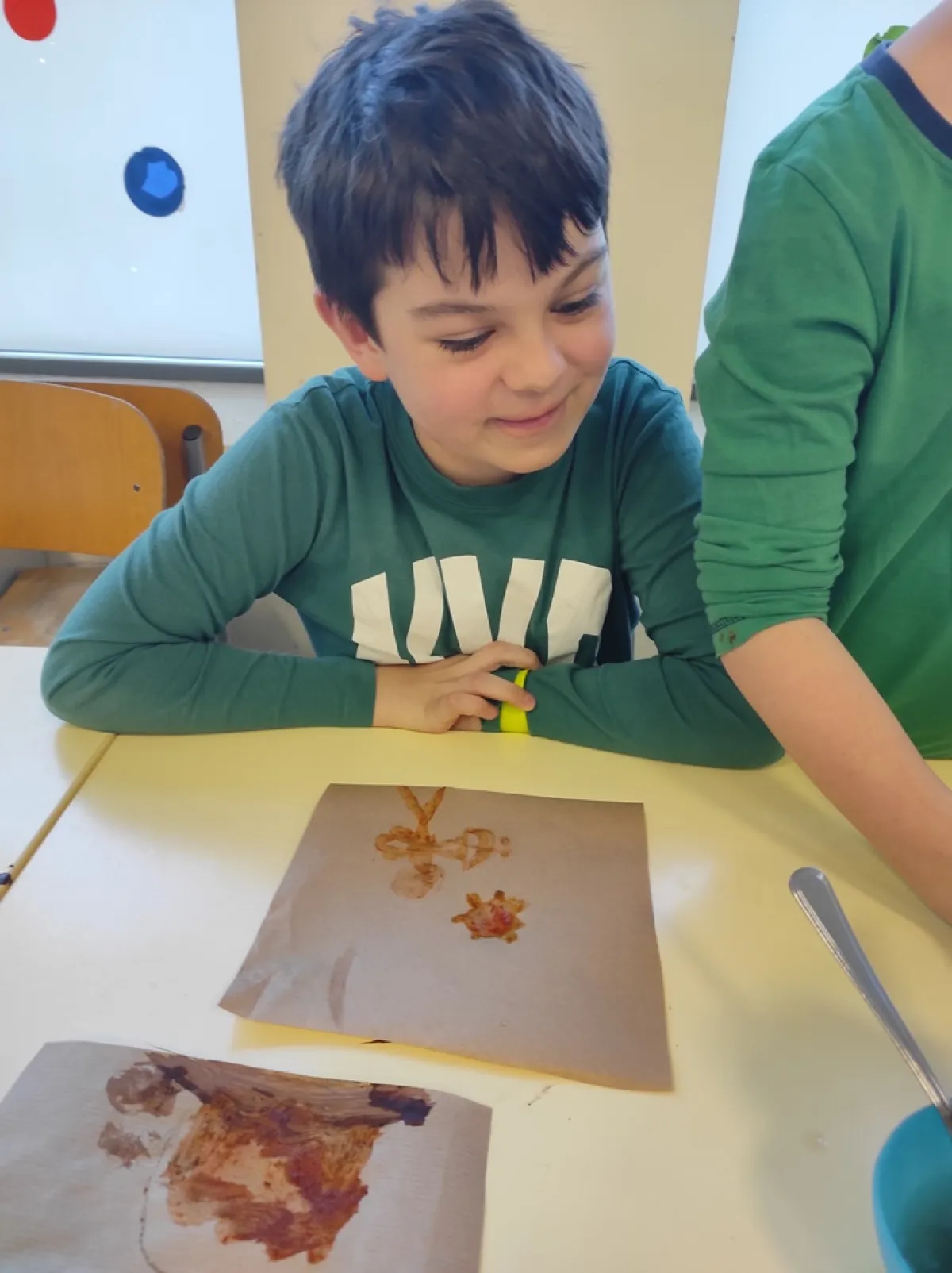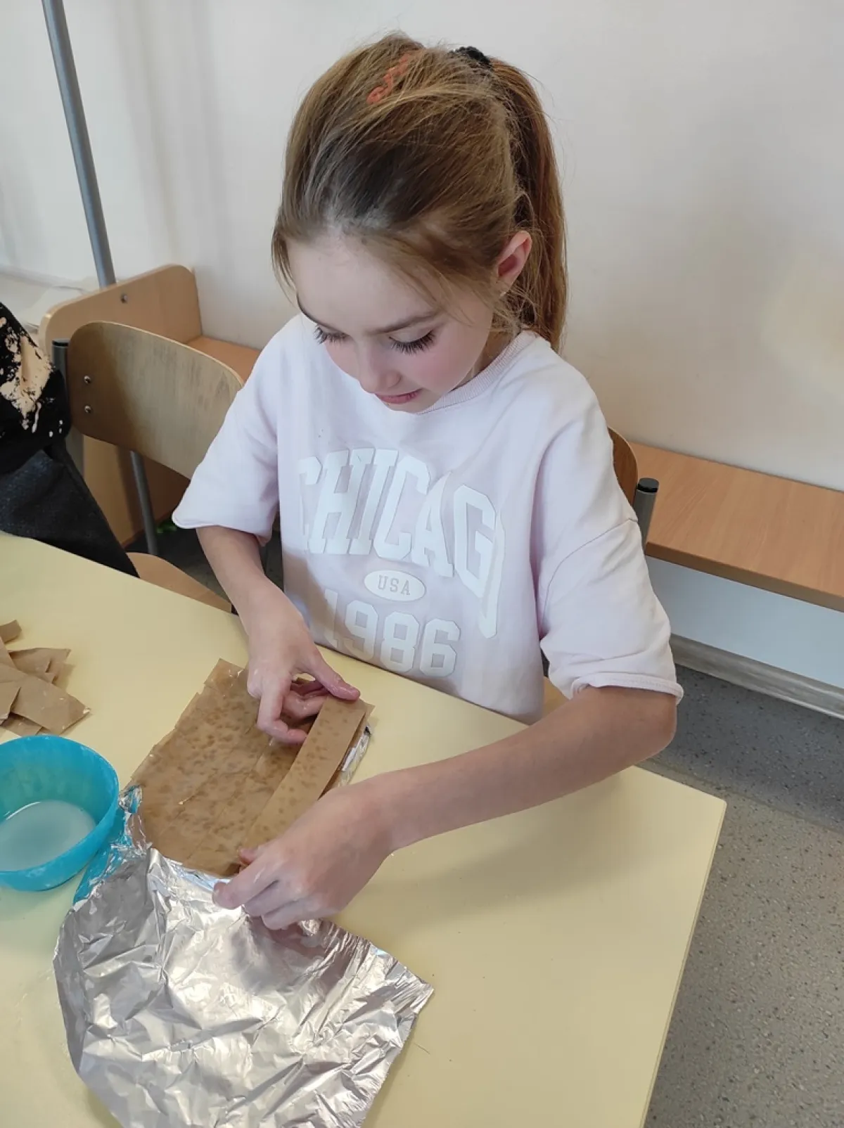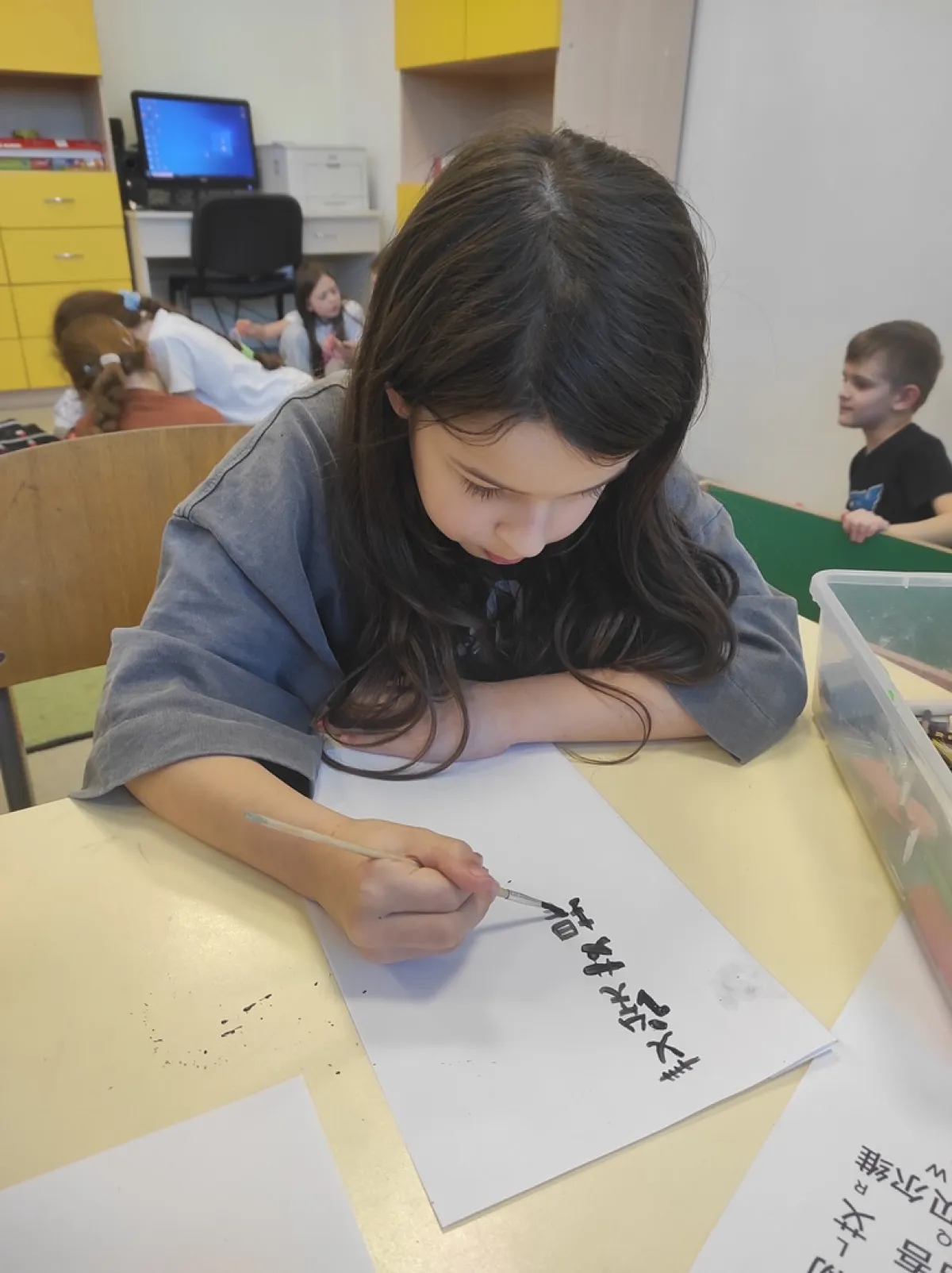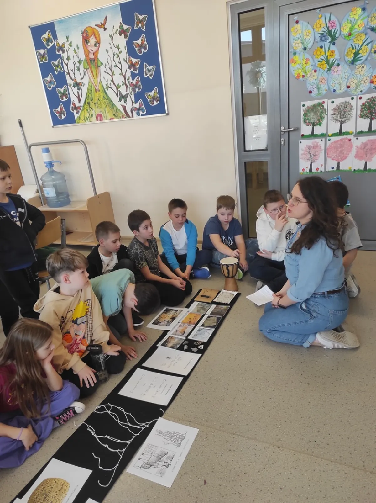 Mali artyści spróbowali swoich sił w tworzeniu malunków naskalnych, nawiązując do pierwotnych form komunikacji, które były stosowane przez naszych przodków. Używali w tym celu naturalnych farb, zrobionych z przypraw. Podczas zajęć mali twórcy tworzyli własne papirusy, na których rysowali hieroglify, inspirując się starożytnymi Egipcjanami. Kolejnym krokiem było lepienie glinianych tabliczek, na których dzieci mogły pisać pismem klinowym – jednym z najstarszych systemów pisma. Następnie, młodzi uczniowie przenieśli się do Chin, gdzie pisali swoje imiona pismem chińskim, a także tworzyli wiadomości, odciskając literkowe pieczątki.