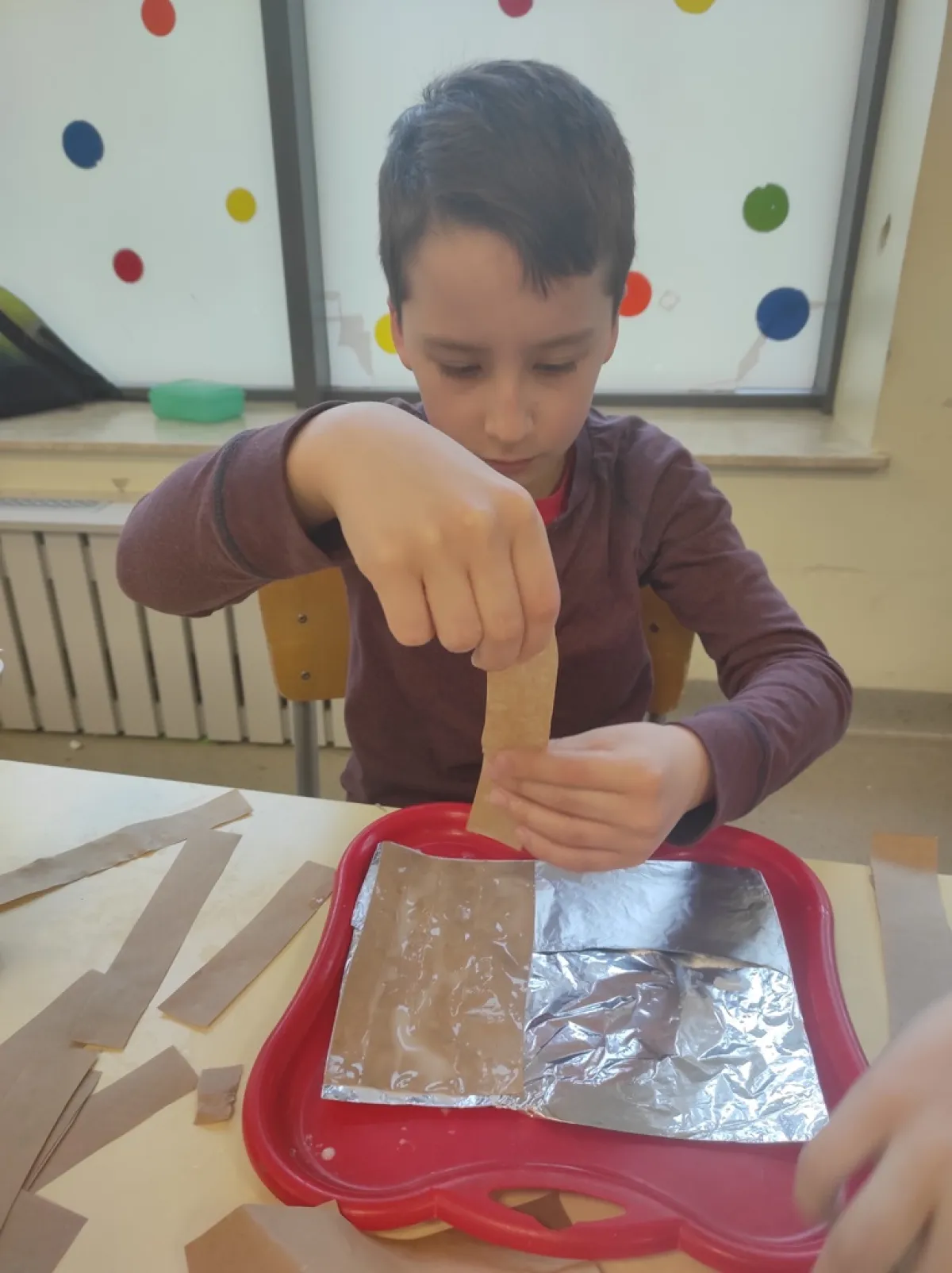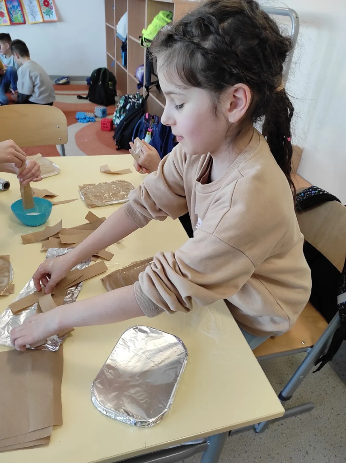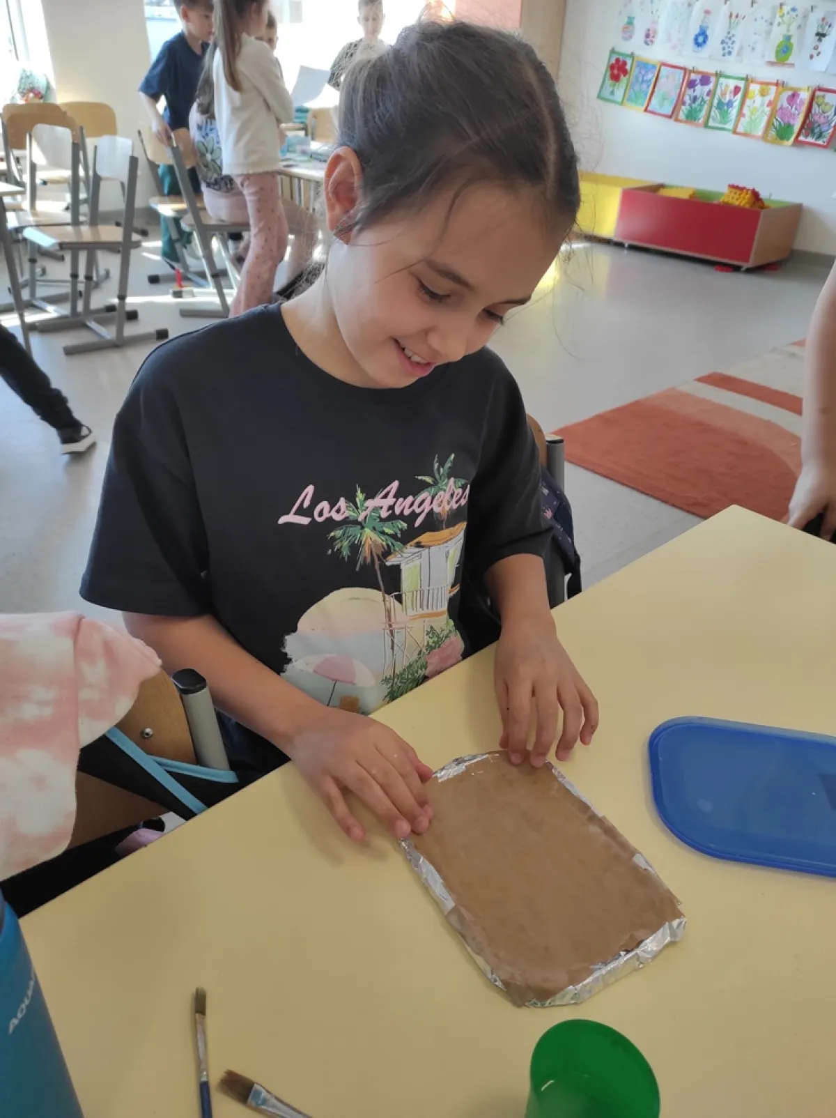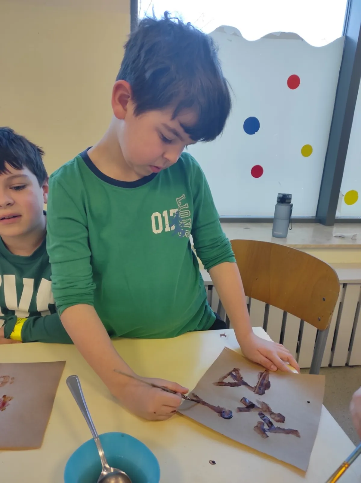 Mali artyści spróbowali swoich sił w tworzeniu malunków naskalnych, nawiązując do pierwotnych form komunikacji, które były stosowane przez naszych przodków. Używali w tym celu naturalnych farb, zrobionych z przypraw. Podczas zajęć mali twórcy tworzyli własne papirusy, na których rysowali hieroglify, inspirując się starożytnymi Egipcjanami. Kolejnym krokiem było lepienie glinianych tabliczek, na których dzieci mogły pisać pismem klinowym – jednym z najstarszych systemów pisma. Następnie, młodzi uczniowie przenieśli się do Chin, gdzie pisali swoje imiona pismem chińskim, a także tworzyli wiadomości, odciskając literkowe pieczątki.
