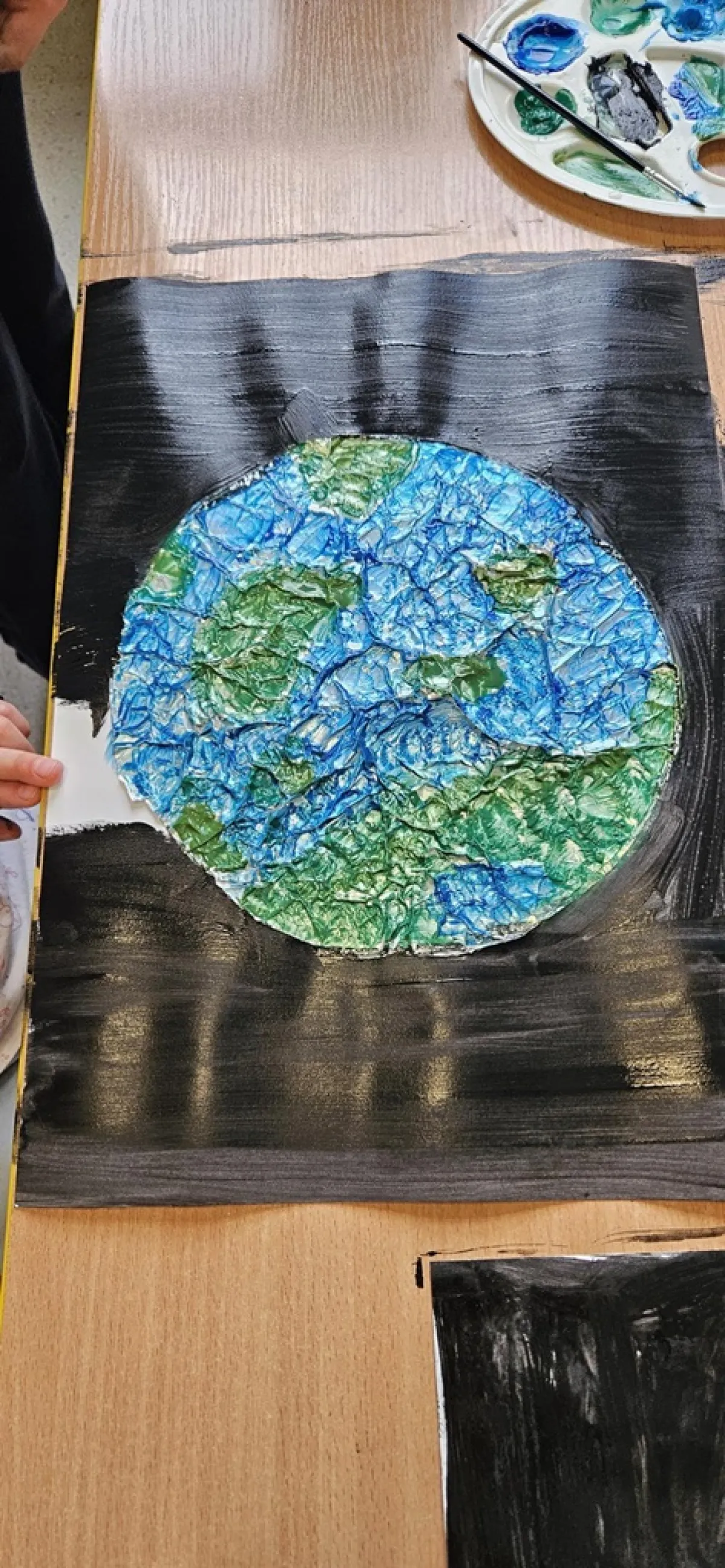 Tematyka zajęć pozwoliła uczniom wyrazić swoje odczucia związane z ochroną środowiska i pięknem naszej Planety. Zajęcia były okazją do połączenia sztuki z edukacją ekologiczną. Przyniosły uczniom wiele przyjemności. To forma aktywności artystycznej, która rozwija u uczniów szereg umiejętności. Pobudza wyobraźnię, zachęca do eksperymentowania kolorami, fakturami i kształtem. Wymaga precyzyjnych ruchów, co wzmacnia sprawność manualną i koordynację ręka - oko. Wspiera rozwój integracji sensorycznej.