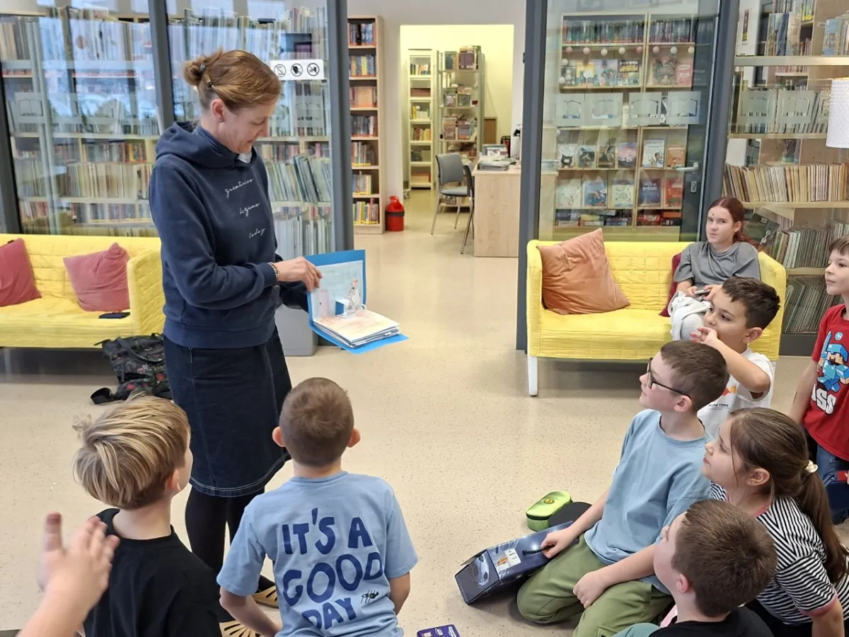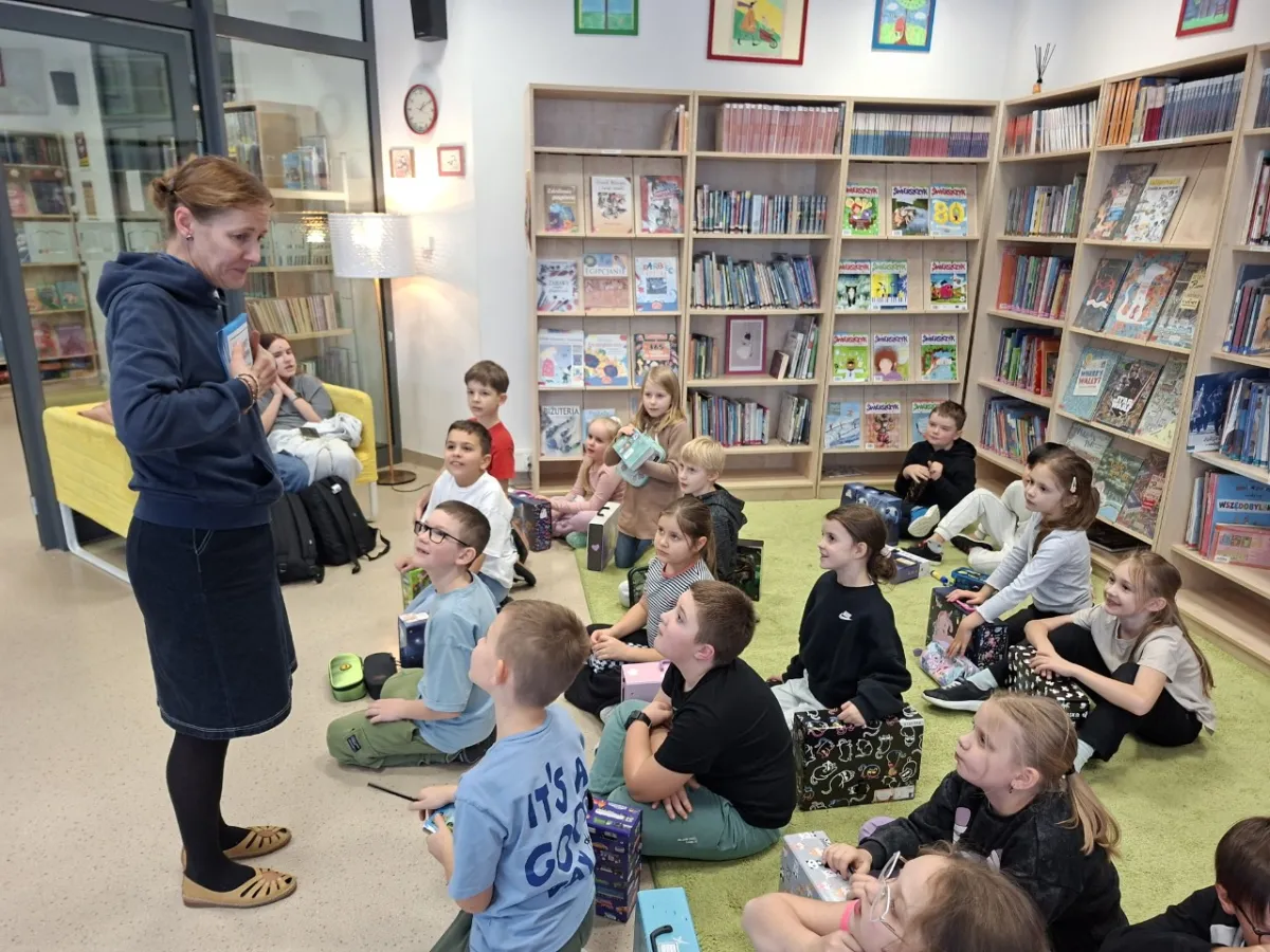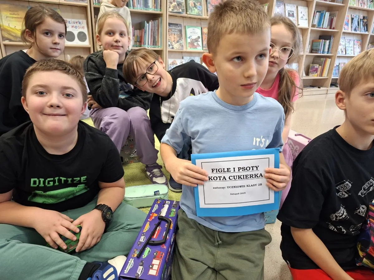 Uczniowie klasy 2b wzięli udział w warsztatach bibliotecznych w naszej szkole. W trakcie warsztatów mieli okazję poznać książki z trójwymiarowymi stronami. Książki pop up są bardzo inspirujące i ciekawe. Każda strona skrywa jakaś niespodziankę. Po części wstępnej uczniowie przeszli do projektowania swojej klasowej książki. Inspiracją była nie dawno omawiana lektura W. Cichonia „Cukierku Ty Łobuzie”. Każdy uczeń wykonał swoją odrębną stronę w stylu pop up w nawiązaniu do treści lektury. Cała twórczość sprawiała uczniom wiele radości, gdyż efekty były zaskakujące i piękne. Na koniec wszystkie strony zostały sklejone, a książka została oprawiona i zatytułowana. Całe warsztaty odbyły się w radosnej atmosferze pełnej twórczości. Bardzo cieszymy, iż udało się wspólnie stworzyć klasową pamiątkę w formie książki oraz zachęcić do poznawania książek.
