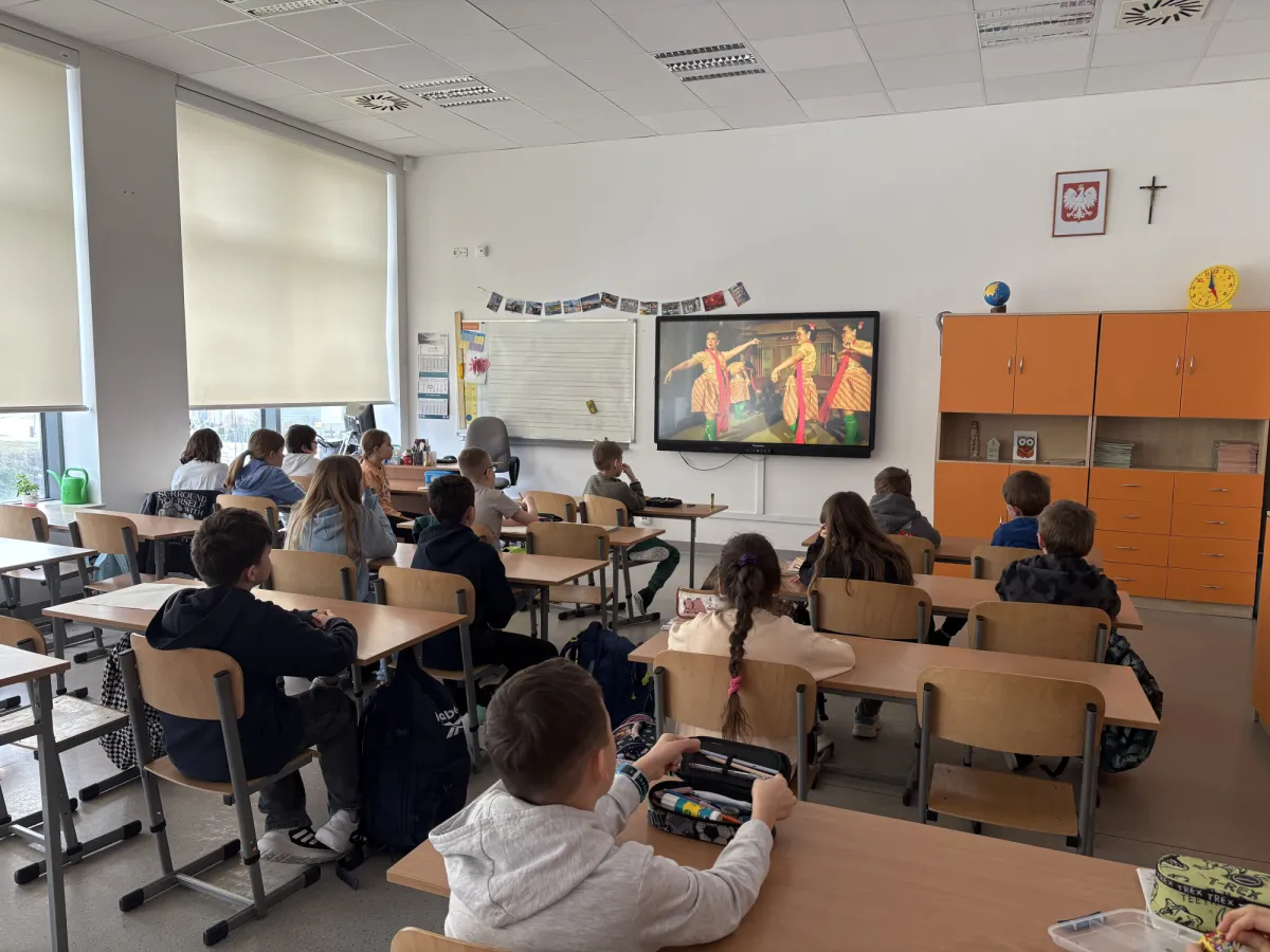 Tematem zajęć uczniów klasy 3g był taniec – jego rola w życiu ludzi i różnorodność na świecie. Podczas lekcji dzieci poznawały różne gatunki tańca, oglądały materiały wideo oraz łączyły je z miejscami ich pochodzenia. Wiedzę utrwalały poprzez zabawę w kalambury, która rozwijała współpracę i aktywność uczniów. Zwieńczeniem projektu był wspólny taniec poloneza, dzięki któremu uczniowie poznali elementy polskiej tradycji tanecznej i poczuli radość ze wspólnego ruchu. Projekt pokazał, że taniec – niezależnie od miejsca na świecie – wciąż łączy ludzi i pozwala wyrażać emocje.