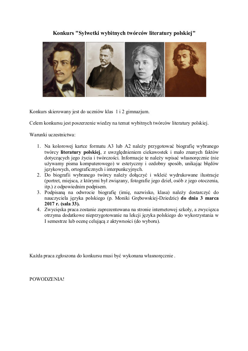 Konkurs "Sylwetki wybitnych twórców literatury polskiej"