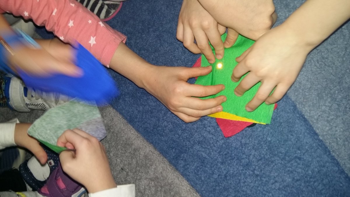 W trakcie trwania zajęć uczniowie dowiedzieli się, jak działają powierzchnie odblaskowe i jak kolor ubrania wpływa na bezpieczeństwo na drodze oraz dlaczego przedmioty mają kolory. Wyjaśnione zostały zjawiska: widzenia, widzenia kolorów, odbicia światła przez różne powierzchnie.