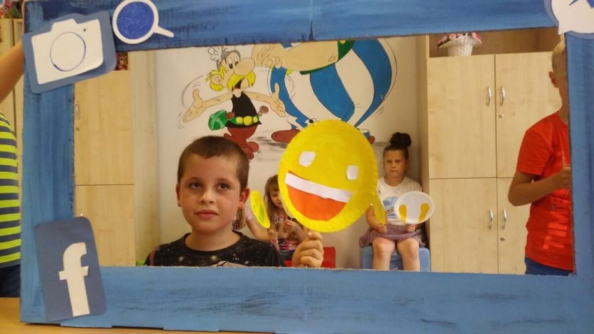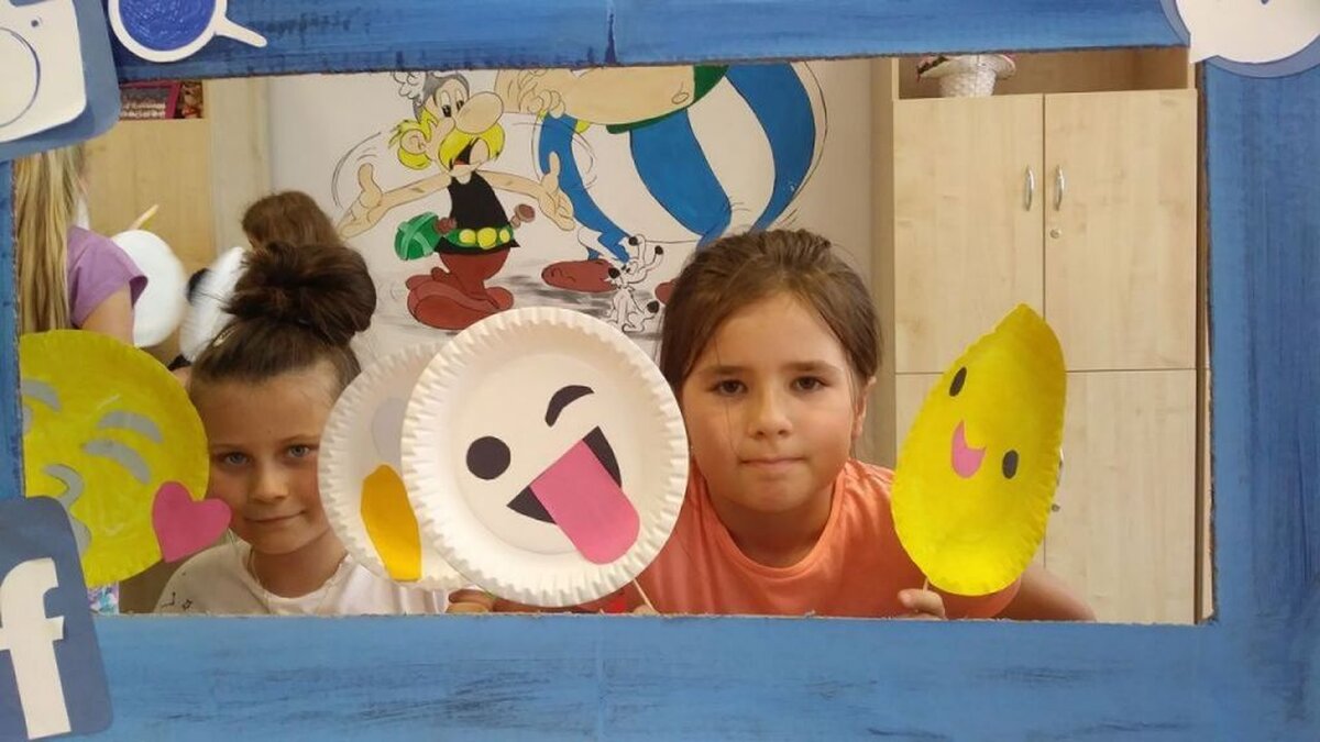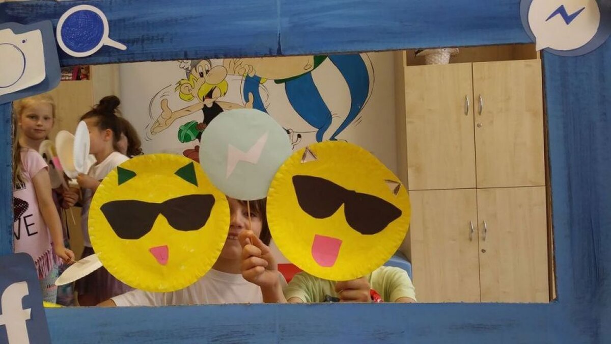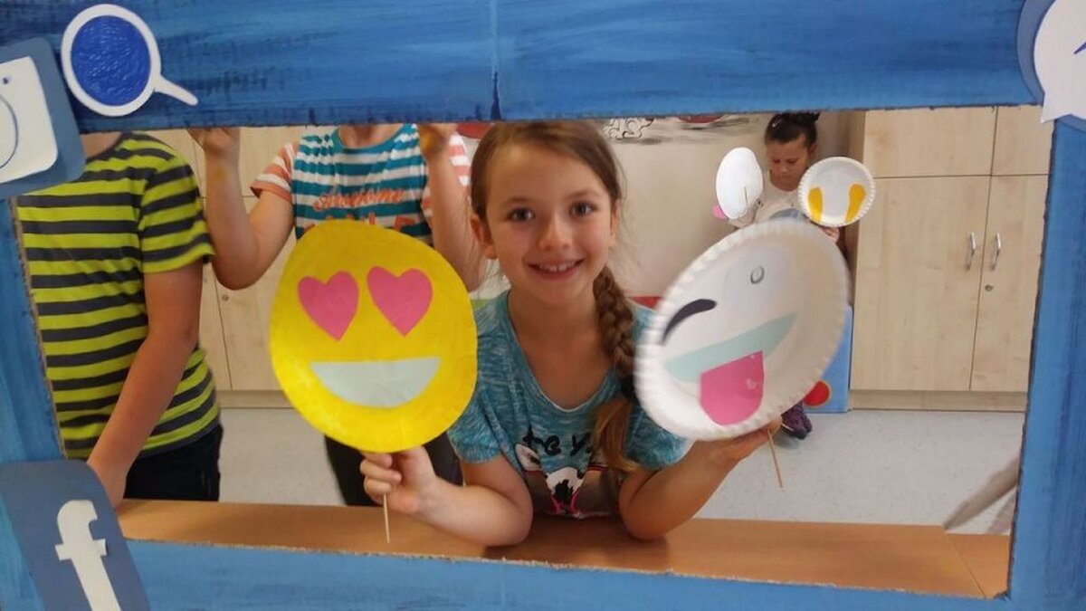W czerwcu odbyły się w naszej świetlicy szkolnej warsztaty kreatywne "Świetlicowa foto-budka". W czasie zajęć dzieci przygotowywały swoją własną świetlicową foto-budkę tworząc oryginalne rekwizyty do wykorzystania podczas sesji zdjęciowej. Po pomalowaniu papierowych talerzyków na kolor żółty, uczniowie tworzyli różnorodne emotikony. Serdecznie dziękujemy pani N. Pilch, która gościła na naszych zajęciach za fantastyczną zabawę i dużą porcję uśmiechu.