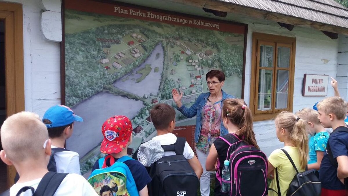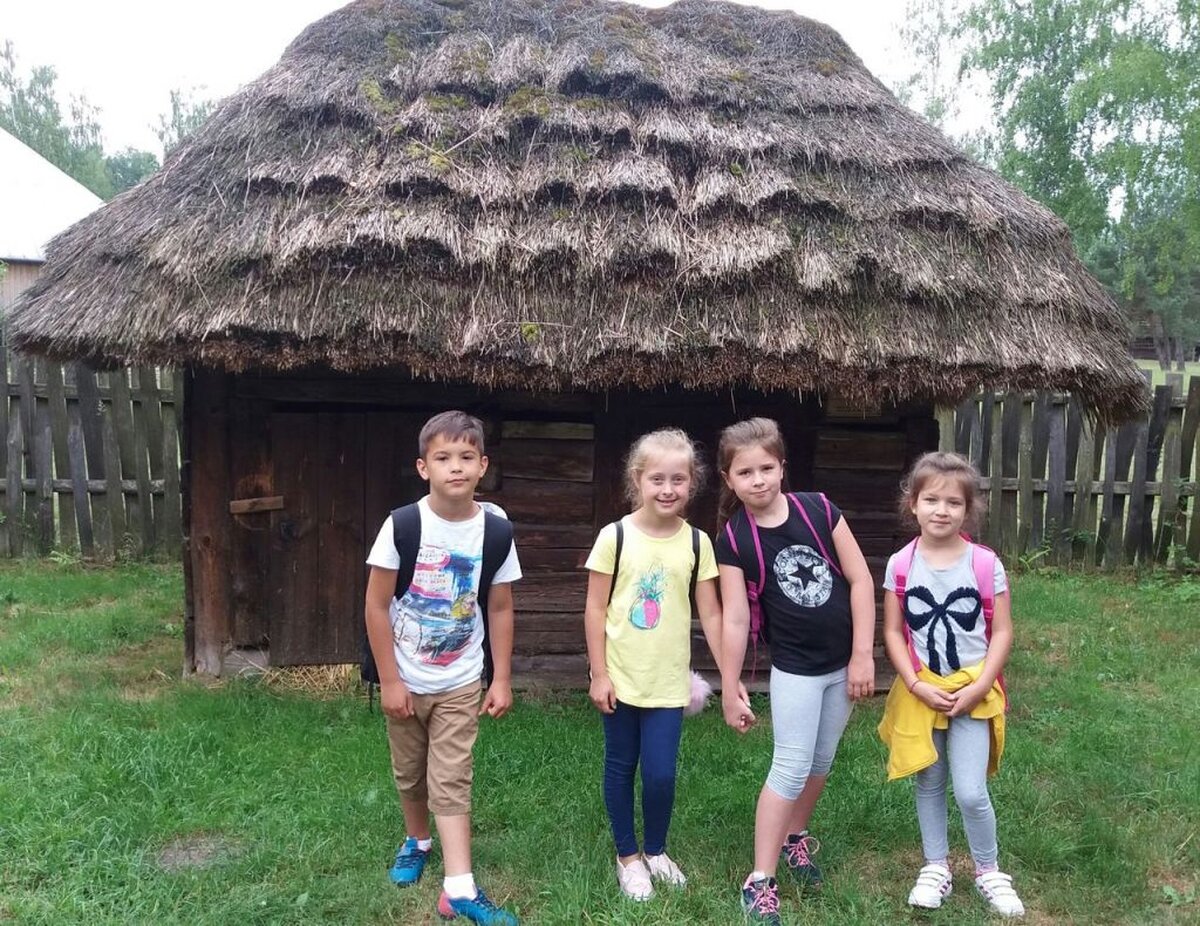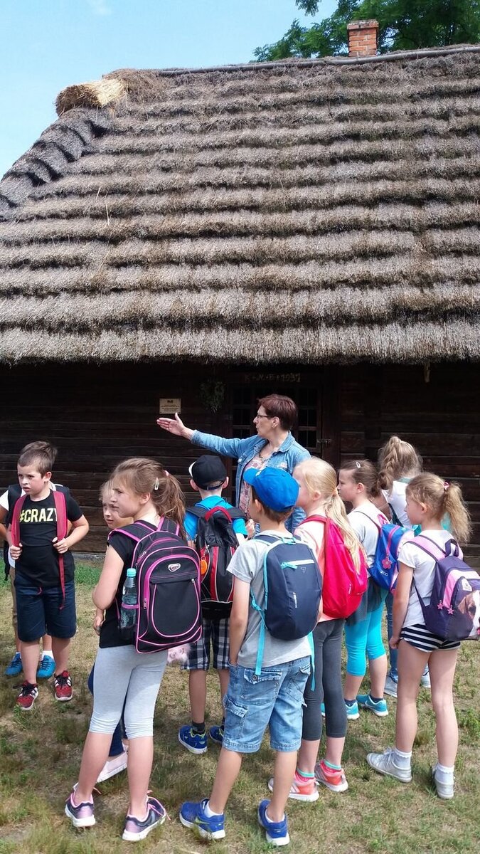 13 czerwca 2018 roku uczniowie klasy 1b wybrali się na wycieczkę do Muzeum Kultury Ludowej w Kolbuszowej. Skansen na wolnym powietrzu, to malownicze okolice, które przenoszą zwiedzających w niezwykłą podróż w przeszłość. Podczas wizyty w skansenie uczniowie zwiedzali zabytki architektury drewnianej, a także poznali znaczenie chleba, który od wieków stanowił główny pokarm ludzi. Był symbolem wszelkiego pożywienia, a także dostatku i pomyślności. W tradycji polskiej od najdawniejszych czasów uważany był za dar boży. Ten spożywany przez naszych przodków znacząco różnił się od współczesnego sposobem przygotowania, kształtem, smakiem i wartościami odżywczymi. Uczniowie w zagrodzie wzięli udział w lekcji „Ziarnko do ziarnka”, dowiedzieli się o ciekawych zwyczajach związanych z wypiekiem chleba. Na koniec upiekli tradycyjny przysmak – proziaki, a także uraczyli się smakiem wiejskiego chleba z masłem. Pobyt spędzony w zagrodzie pozwolił poznać świat, którego już nie ma. Wizyta w malowniczym skansenie okazał się dla uczniów ciekawym doświadczeniem i niezwykłą przygodą.
