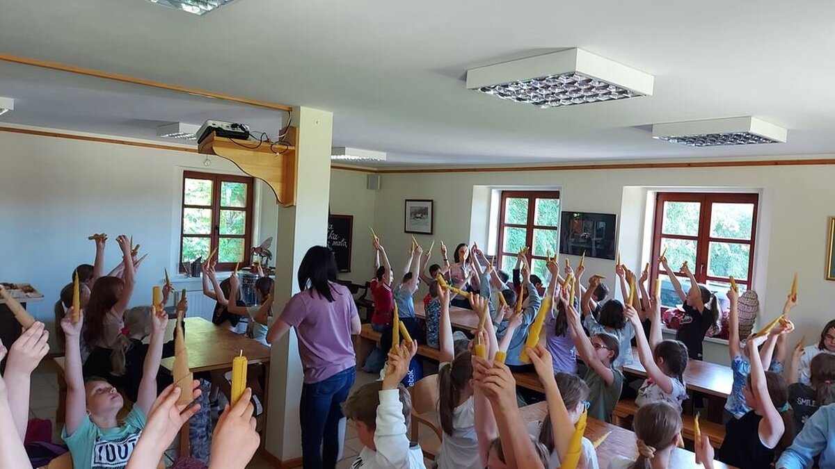 3 czerwca klasy IV D i F spędziły "Miodowy Dzień" w Gospodarstwie Pasiecznym – Stróże k/Gorlice. Była to wycieczka integracyjno-edukacyjna. Celem jej było poznanie regionu, upowszechnienie wśród dzieci zasad ochrony środowiska naturalnego oraz umiejętności korzystania z zasobów przyrody oraz upowszechnianie form aktywnego wypoczynku. Uczniowie poznali jak funkcjonują pszczoły, uczestniczyli w warsztatach gdzie robili świece z wosku, smakowali różnego rodzaju miodów. Oprócz pszczół w gospodarstwie były kozy, osły, konie i różne ptaki (kury ozdobne, bażanty itp.), które dzieci karmiły i głaskały. Inne atrakcje to kiełbaska z grilla, przejażdżka wozem i zakupy w sklepiku z wyrobami pszczelarskimi. Po całodniowym pobycie na świeżym powietrzu uczniowie szczęśliwie wrócili do domu.