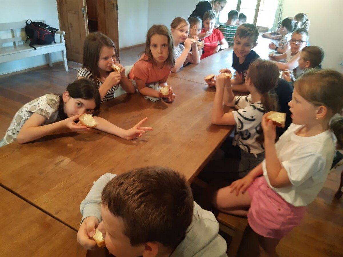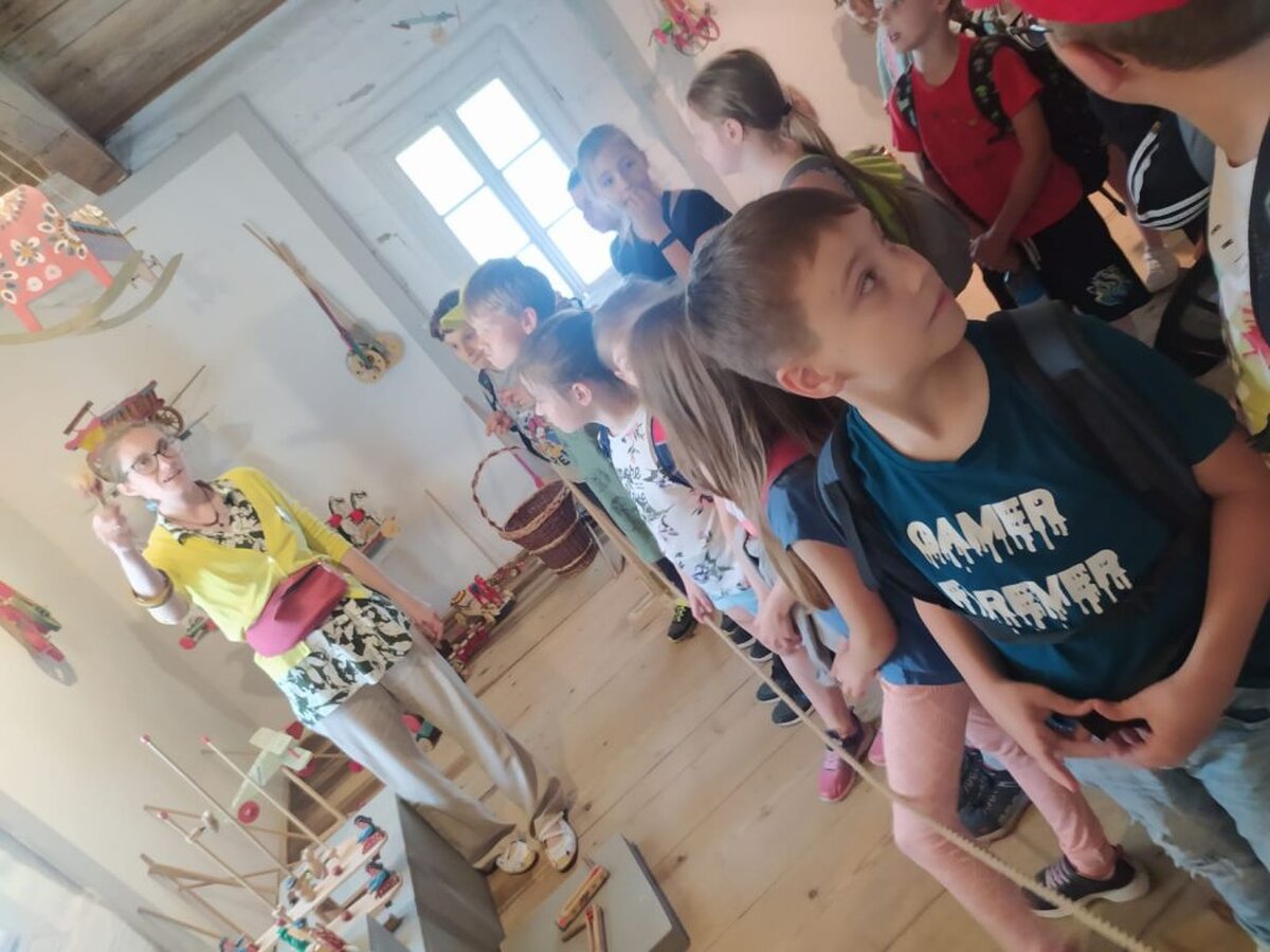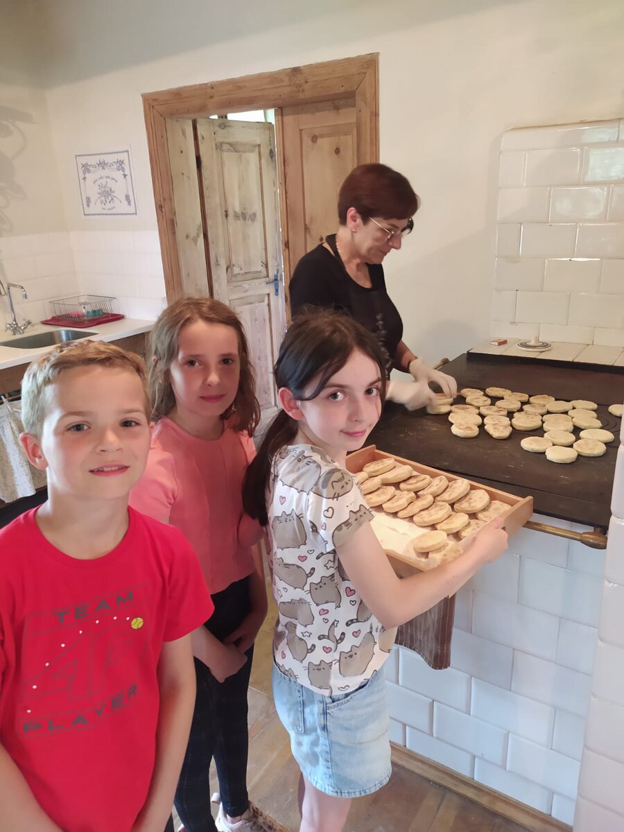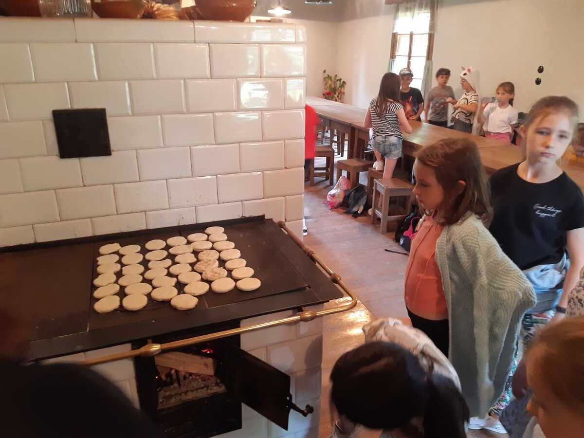 10 czerwca 2022 roku uczniowie klasy 2a i 2g wybrali się na wycieczkę do Muzeum Kultury Ludowej w Kolbuszowej. Skansen na wolnym powietrzu, to malownicze okolice, które przenoszą zwiedzających w niezwykłą podróż w przeszłość. Podczas wizyty w skansenie uczniowie zwiedzali zabytki architektury drewnianej, a także poznali znaczenie chleba, który od wieków stanowił główny pokarm ludzi. Był symbolem wszelkiego pożywienia, a także dostatku i pomyślności. W tradycji polskiej od najdawniejszych czasów uważany był za dar boży. Ten spożywany przez naszych przodków znacząco różnił się od współczesnego sposobem przygotowania, kształtem, smakiem i wartościami odżywczymi. Uczniowie w zagrodzie wzięli udział w lekcji „Ziarnko do ziarnka”, dowiedzieli się o ciekawych zwyczajach związanych z wypiekiem chleba. Na koniec skosztowali tradycyjny przysmak – proziaki, a także uraczyli się smakiem wiejskiego chleba z masłem. Pobyt spędzony w zagrodzie pozwolił poznać świat, którego już nie ma. Wizyta w malowniczym skansenie okazał się dla uczniów ciekawym doświadczeniem i niezwykłą przygodą.