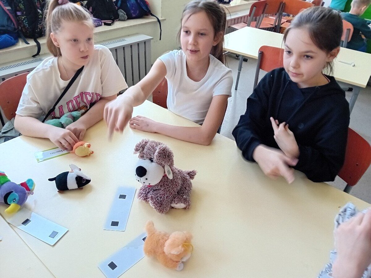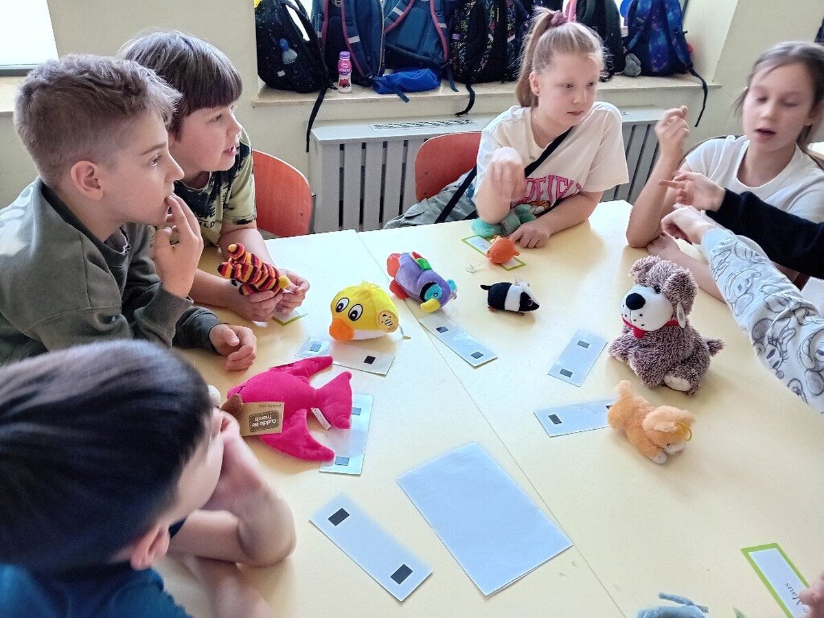 Dzieci bawią się świetnie podczas zajęć, nie wiedząc nawet, jak wiele nowych słów w j. niemieckim już znają: liczą, śpiewają, wyliczają, mówią co lubią jeść, pić, jaki kolor mają na sobie, jakie zwierzątka mają i kochają.